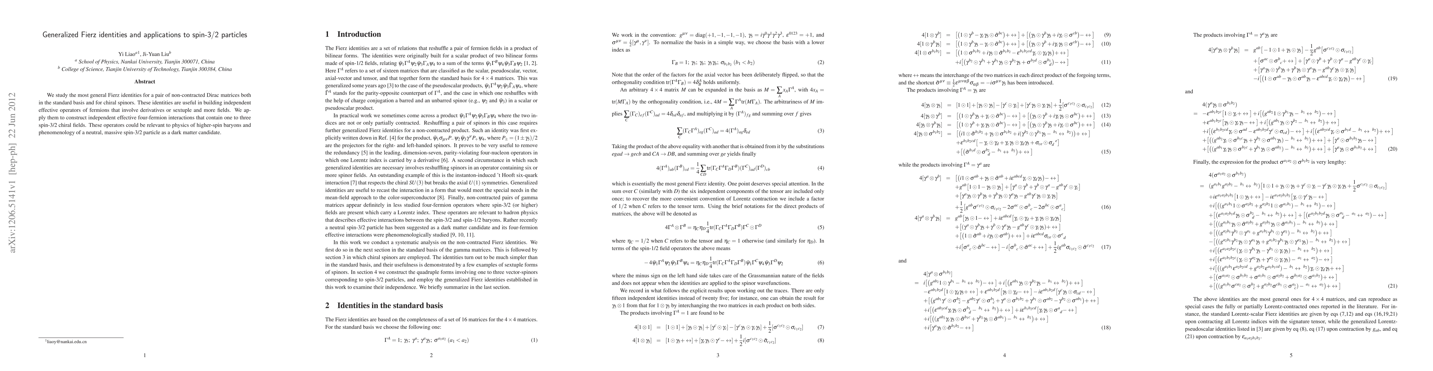 Researchers derive general Fierz identities to study spin-3/2 particles, enabling them to construct effective four-fermion interactions relevant to dark matter candidates.
