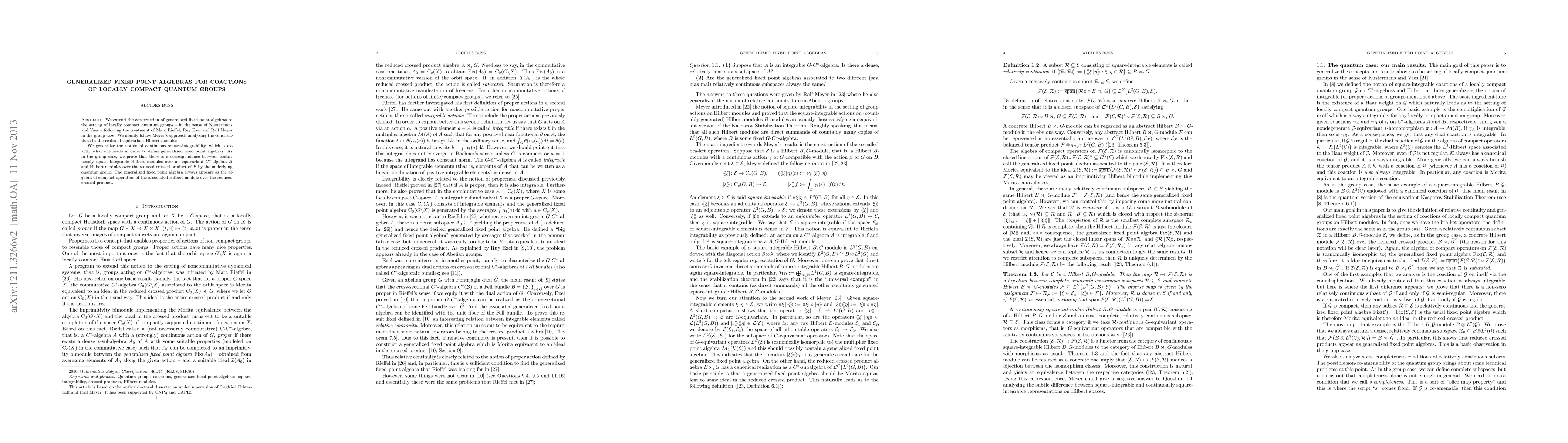 This paper extends the concept of generalized fixed point algebras to locally compact quantum groups, generalizing continuous square-integrability and establishing a correspondence between these integrable Hilbert modules and those over the reduced crossed product, with the fixed point algebra identified as the compact operators.