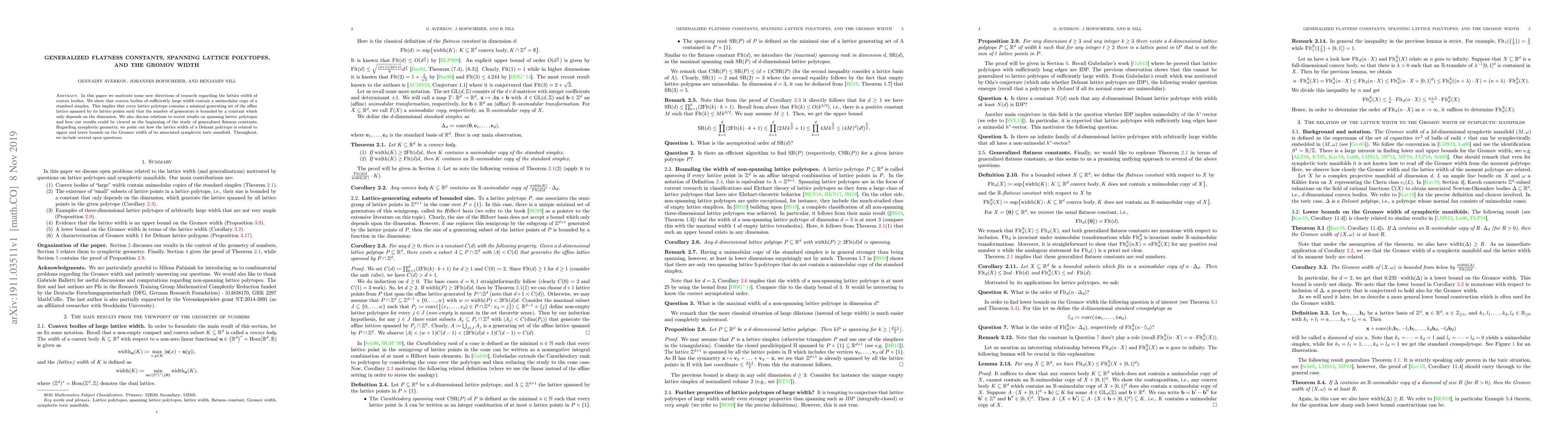 In this paper we motivate some new directions of research regarding the lattice width of convex bodies. We show that convex bodies of sufficiently large width contain a unimodular copy of a standard simplex. This implies that every lattice polytope contains a minimal generating set of the affine lattice spanned by its lattice points such that the number of generators is bounded by a constant which only depends on the dimension. We also discuss relations to recent results on spanning lattice polytopes and how our results could be viewed as the beginning of the study of generalized flatness constants. Regarding symplectic geometry, we point out how the lattice width of a Delzant polytope is related to upper and lower bounds on the Gromov width of its associated symplectic toric manifold. Throughout, we include several open questions.