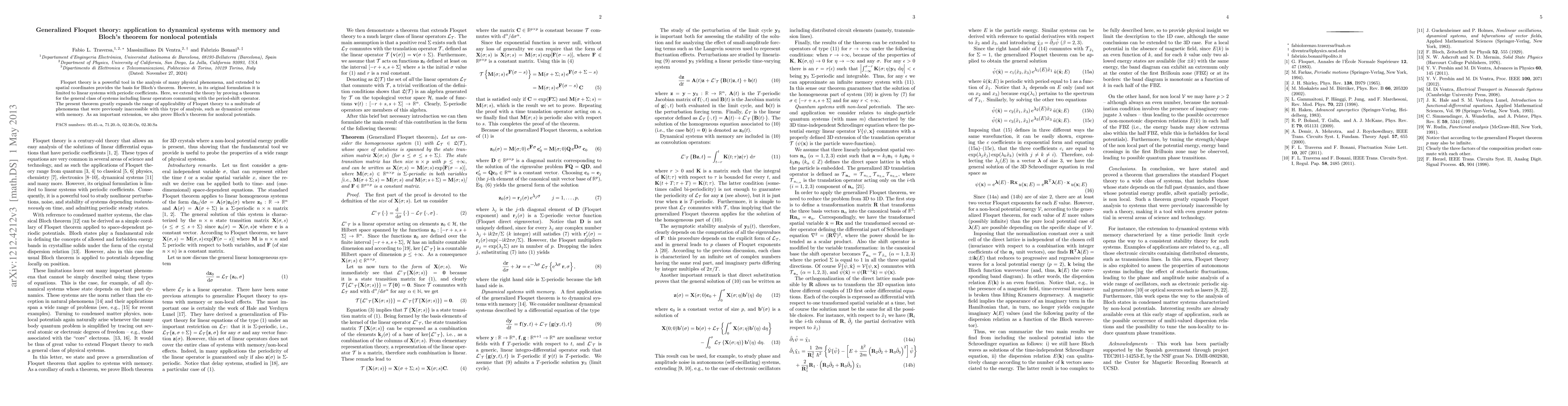 This paper extends generalized Floquet theory to encompass a broader class of dynamical systems, including those with memory, and proves Bloch's theorem for nonlocal potentials, thus significantly broadening the applicability of these analytical tools beyond linear systems with periodic coefficients.