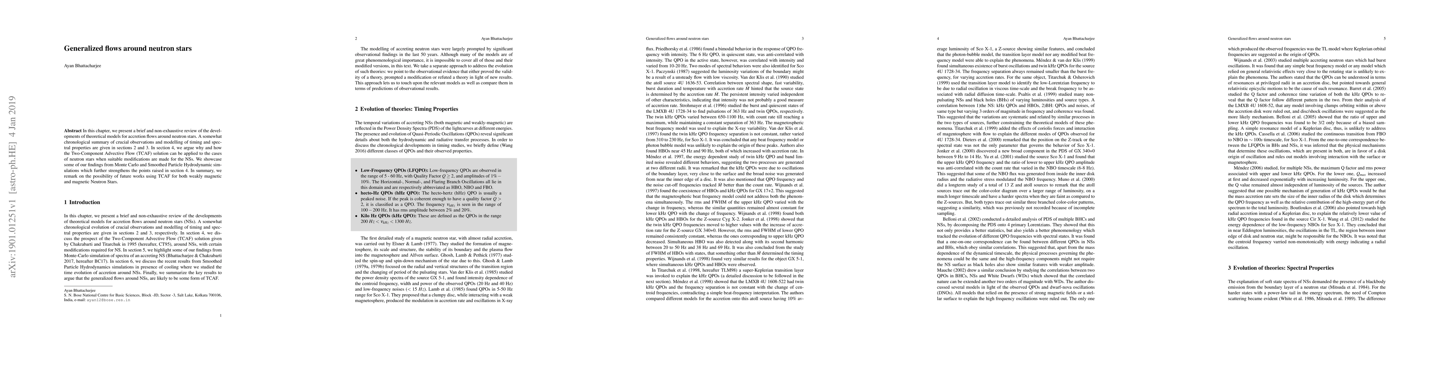 In this chapter, we present a brief and non-exhaustive review of the developments of theoretical models for accretion flows around neutron stars. A somewhat chronological summary of crucial observations and modelling of timing and spectral properties are given in sections 2 and 3. In section 4, we argue why and how the Two-Component Advective Flow (TCAF) solution can be applied to the cases of neutron stars when suitable modifications are made for the NSs. We showcase some of our findings from Monte Carlo and Smoothed Particle Hydrodynamic simulations which further strengthens the points raised in section 4. In summary, we remark on the possibility of future works using TCAF for both weakly magnetic and magnetic Neutron Stars.