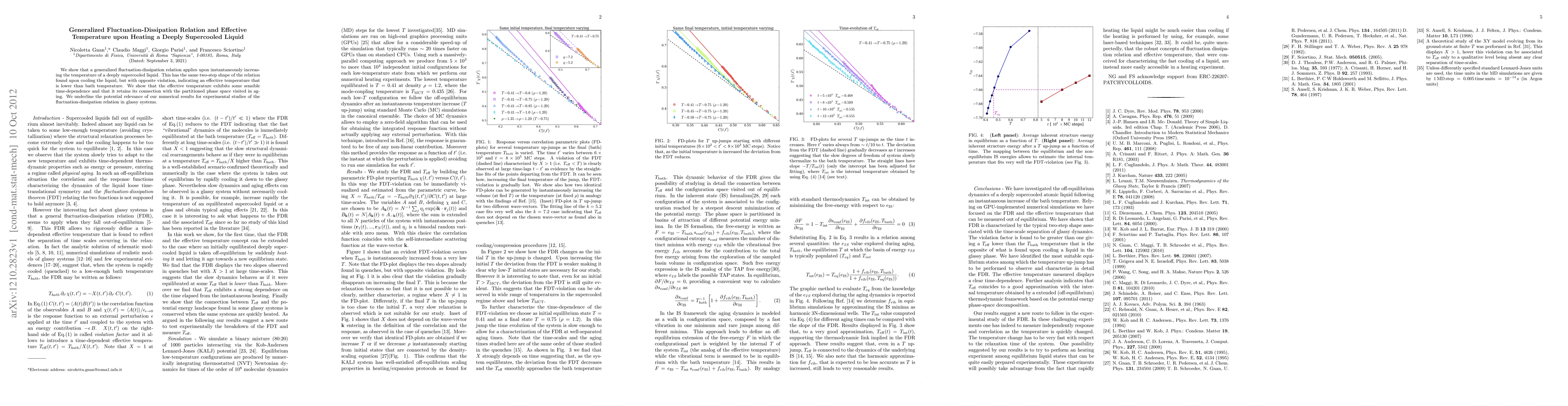 This paper demonstrates a generalized fluctuation-dissipation relation in deeply supercooled liquids upon heating, revealing an effective temperature lower than the bath temperature, with a time-dependent behavior linked to the phase space partitioning in ageing. The findings hold significant implications for experimental studies of glassy systems.