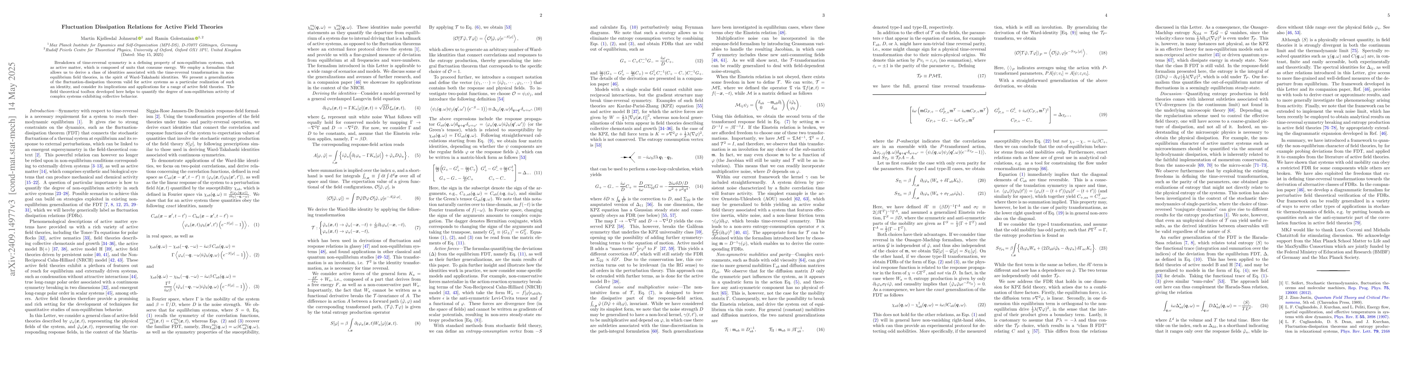 This paper develops a generalized fluctuation-dissipation theorem for active field theories, deriving identities associated with time-reversal transformations in non-equilibrium systems, and applies the approach to the Non-Reciprocal Cahn-Hilliard model to quantify the degree of non-equilibrium activity in such systems.