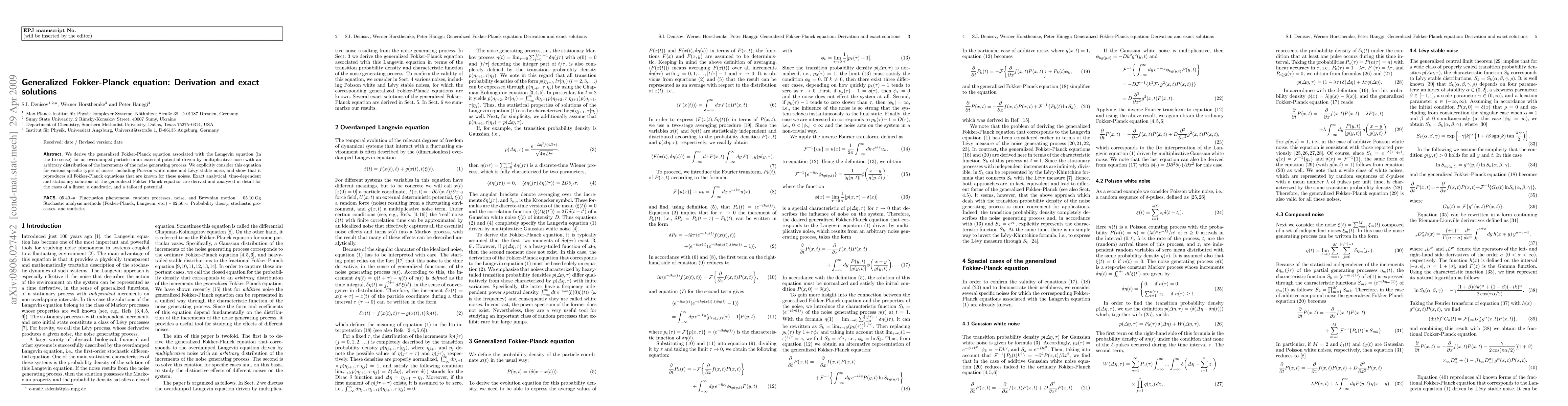 This paper derives the generalized Fokker-Planck equation for an overdamped particle under multiplicative noise, showing its applicability to various noise types. Exact analytical solutions for different potentials are provided, including linear, quadratic, and tailored cases.