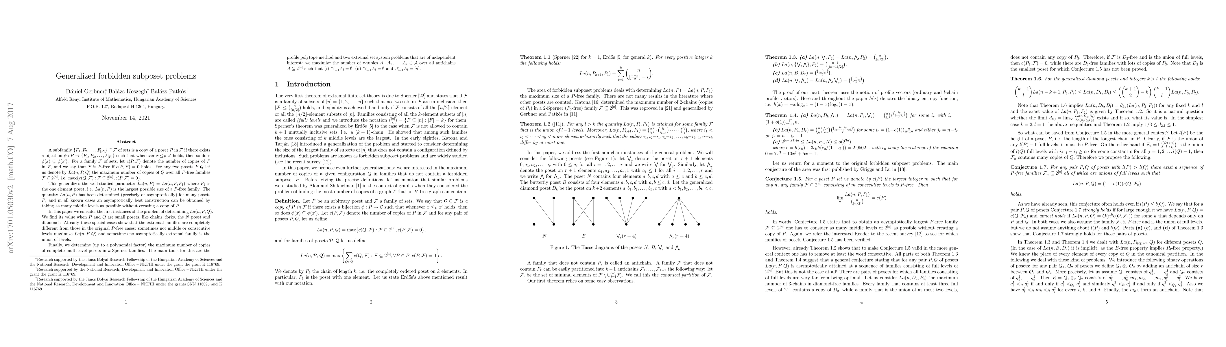 A subfamily $\{F_1,F_2,\dots,F_{|P|}\}\subseteq {\cal F}$ of sets is a copy of a poset $P$ in ${\cal F}$ if there exists a bijection $\phi:P\rightarrow \{F_1,F_2,\dots,F_{|P|}\}$ such that whenever $x \le_P x'$ holds, then so does $\phi(x)\subseteq \phi(x')$. For a family ${\cal F}$ of sets, let $c(P,{\cal F})$ denote the number of copies of $P$ in ${\cal F}$, and we say that ${\cal F}$ is $P$-free if $c(P,{\cal F})=0$ holds. For any two posets $P,Q$ let us denote by $La(n,P,Q)$ the maximum number of copies of $Q$ over all $P$-free families ${\cal F} \subseteq 2^{[n]}$, i.e. $\max\{c(Q,{\cal F}): {\cal F} \subseteq 2^{[n]}, c(P,{\cal F})=0 \}$. This generalizes the well-studied parameter $La(n,P)=La(n,P,P_1)$ where $P_1$ is the one element poset. The quantity $La(n,P)$ has been determined (precisely or asymptotically) for many posets $P$, and in all known cases an asymptotically best construction can be obtained by taking as many middle levels as possible without creating a copy of $P$. In this paper we consider the first instances of the problem of determining $La(n,P,Q)$. We find its value when $P$ and $Q$ are small posets, like chains, forks, the $N$ poset and diamonds. Already these special cases show that the extremal families are completely different from those in the original $P$-free cases: sometimes not middle or consecutive levels maximize $La(n,P,Q)$ and sometimes no asymptotically extremal family is the union of levels. Finally, we determine the maximum number of copies of complete multi-level posets in $k$-Sperner families. The main tools for this are the profile polytope method and two extremal set system problems that are of independent interest: we maximize the number of $r$-tuples $A_1,A_2,\dots, A_r \in {\cal A}$ over all antichains ${\cal A}\subseteq 2^{[n]}$ such that (i) $\cap_{i=1}^rA_i=\emptyset$, (ii) $\cap_{i=1}^rA_i=\emptyset$ and $\cup_{i=1}^rA_i=[n]$.