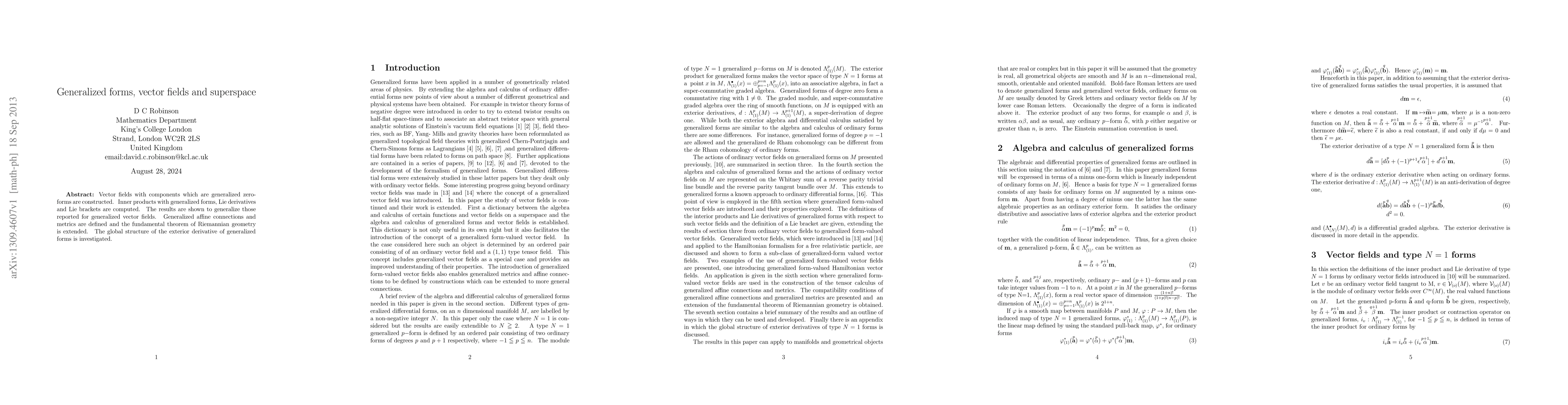 This paper constructs generalized vector fields with zero-form components and extends previous results by computing inner products, Lie derivatives, and brackets. It also defines generalized affine connections and metrics, extending the fundamental theorem of metric differential geometry.
