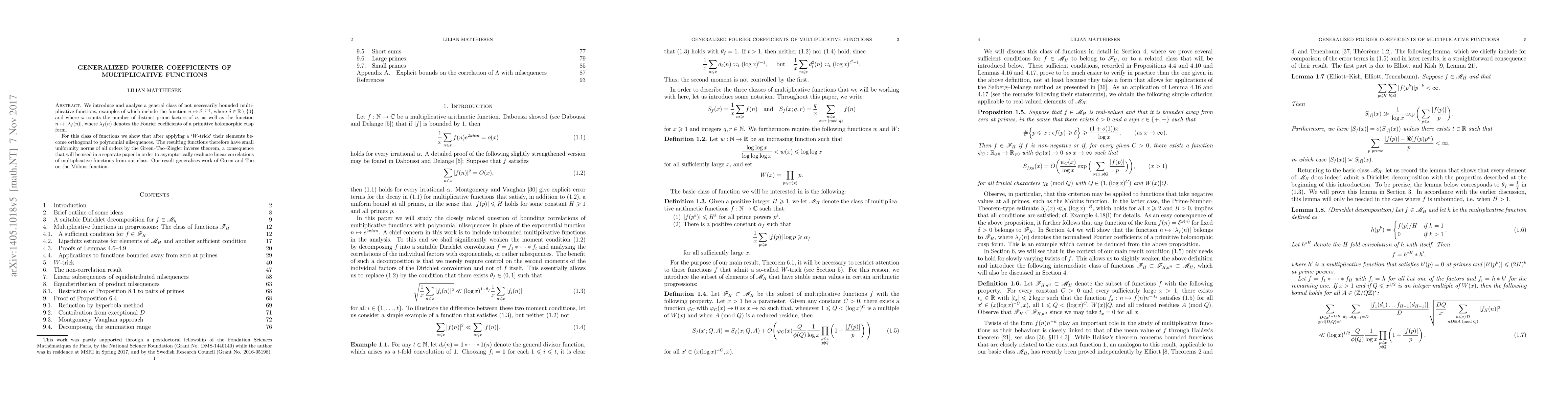 This paper introduces a general class of multiplicative functions and demonstrates their orthogonality to polynomial nilsequences using a "$W$-trick." The study shows that these functions have small uniformity norms, generalising previous results on the M\"obius function and paving the way for evaluating linear correlations of these functions.