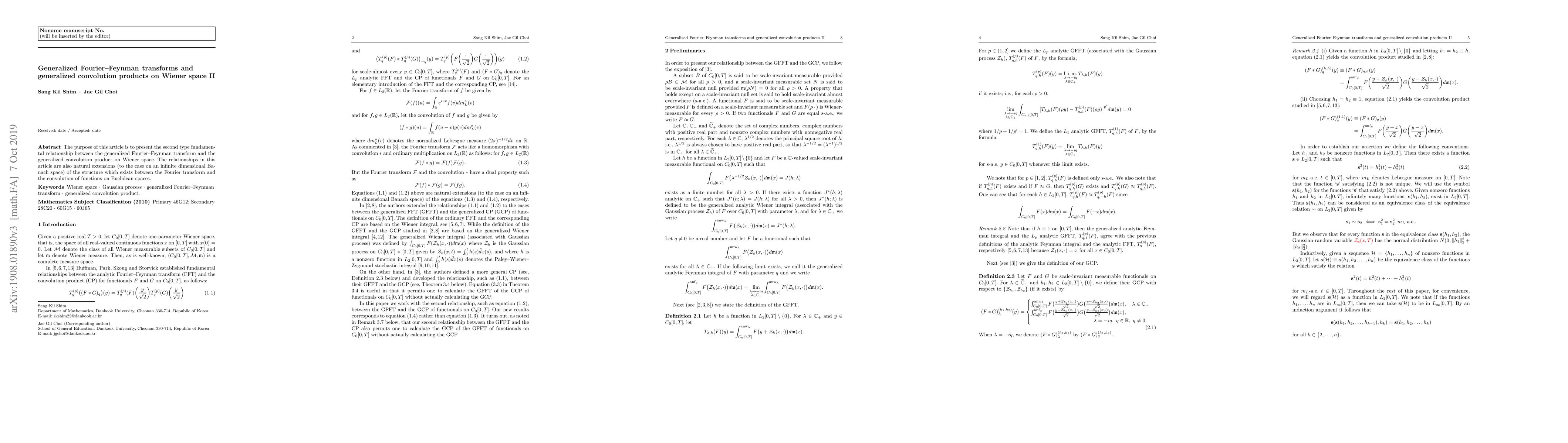 The purpose of this article is to present the second type fundamental relationship between the generalized Fourier--Feynman transform and the generalized convolution product on Wiener space. The relationships in this article are also natural extensions (to the case on an infinite dimensional Banach space) of the structure which exists between the Fourier transform and the convolution of functions on Euclidean spaces.