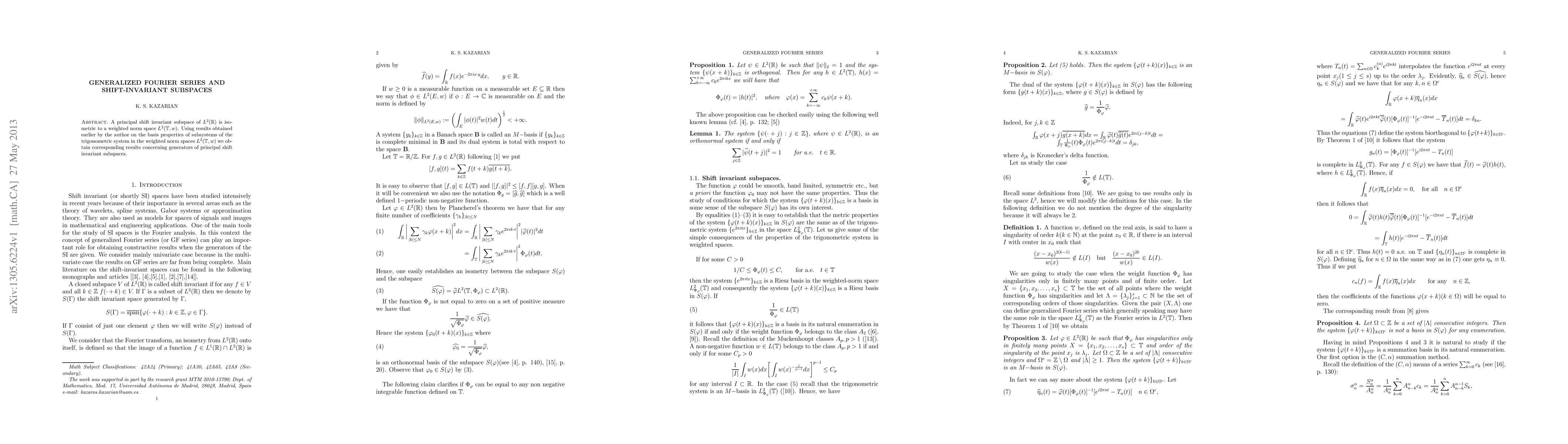 Researchers show that principal shift-invariant subspaces of L^2(ℝ) are isometric to weighted norm spaces L^2(ℝ^+), leveraging earlier work on trigonometric systems in these spaces.