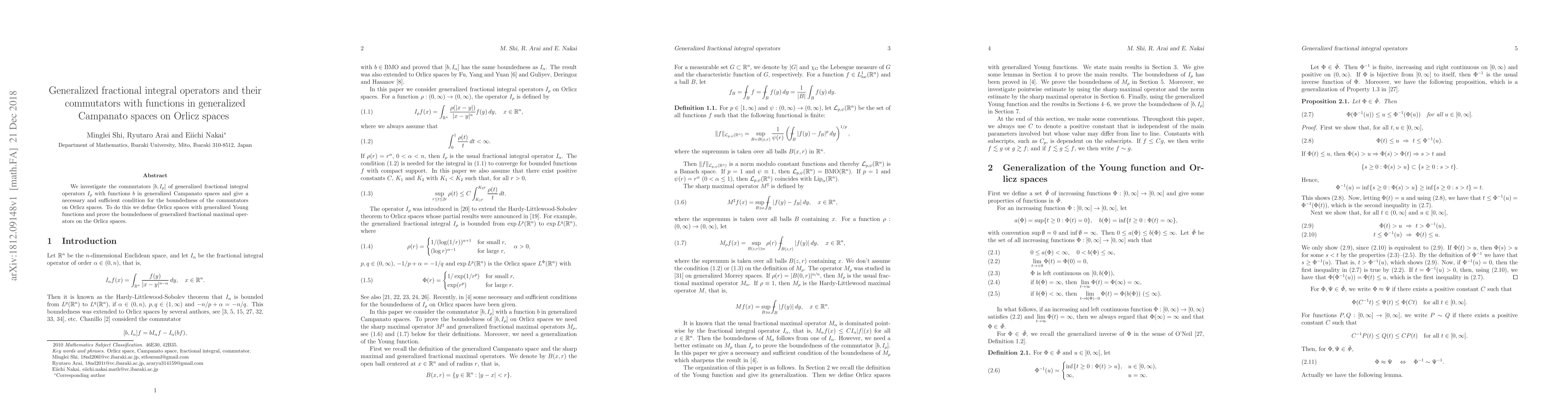 We investigate the commutators $[b,I_{\rho}]$ of generalized fractional integral operators $I_{\rho}$ with functions $b$ in generalized Campanato spaces and give a necessary and sufficient condition for the boundedness of the commutators on Orlicz spaces. To do this we define Orlicz spaces with generalized Young functions and prove the boundedness of generalized fractional maximal operators on the Orlicz spaces.