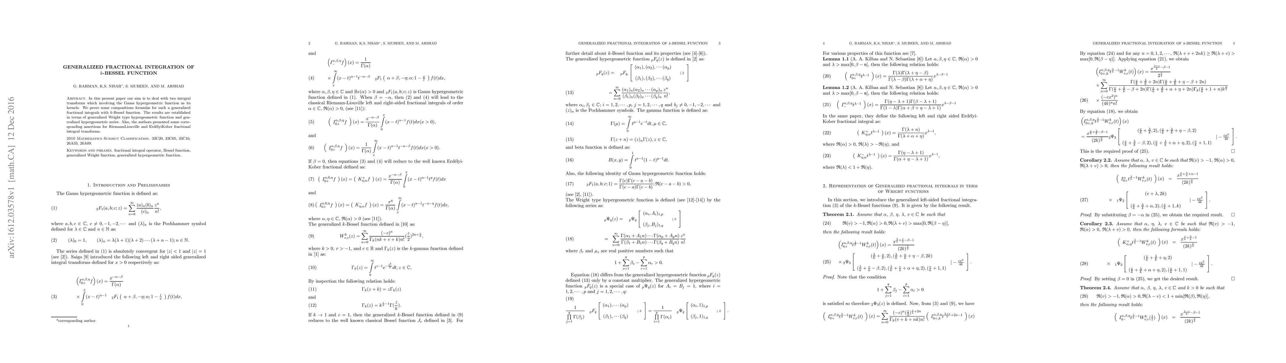 In this present paper our aim is to deal with two integral transforms which involving the Gauss hypergeometric function as its kernels. We prove some compositions formulas for such a generalized fractional integrals with k Bessel function. The results are established in terms of generalized Wright type hypergeometric function and generalized hypergeometric series. Also, the authors presented some corresponding assertions for Riemann Liouville and Erdelyi Kober fractional integral transforms.