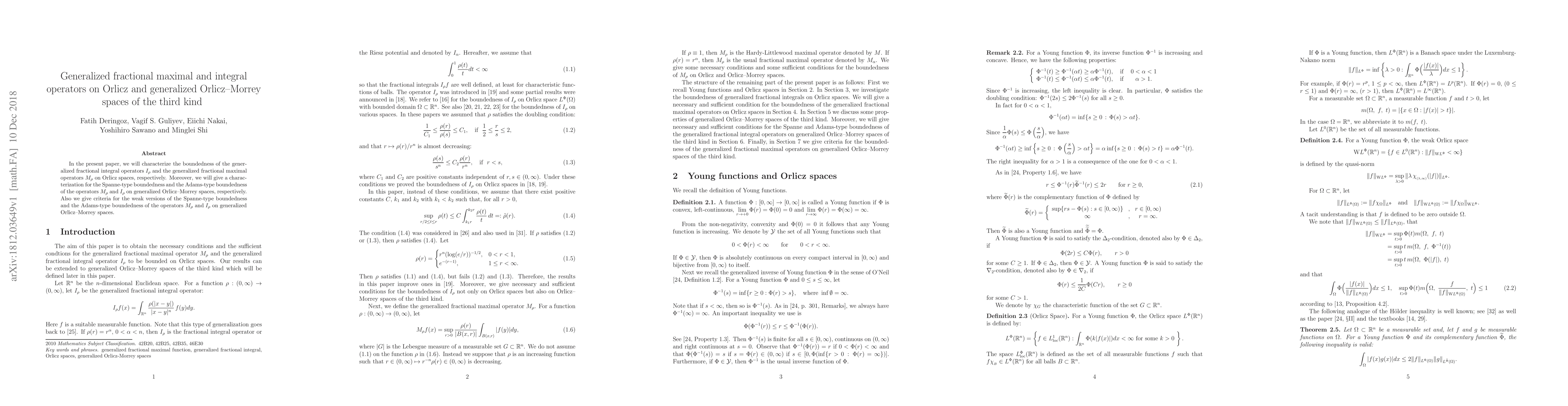 In the present paper, we will characterize the boundedness of the generalized fractional integral operators $I_{\rho}$ and the generalized fractional maximal operators $M_{\rho}$ on Orlicz spaces, respectively. Moreover, we will give a characterization for the Spanne-type boundedness and the Adams-type boundedness of the operators $M_{\rho}$ and $I_{\rho}$ on generalized Orlicz--Morrey spaces, respectively. Also we give criteria for the weak versions of the Spanne-type boundedness and the Adams-type boundedness of the operators $M_{\rho}$ and $I_{\rho}$ on generalized Orlicz--Morrey spaces.