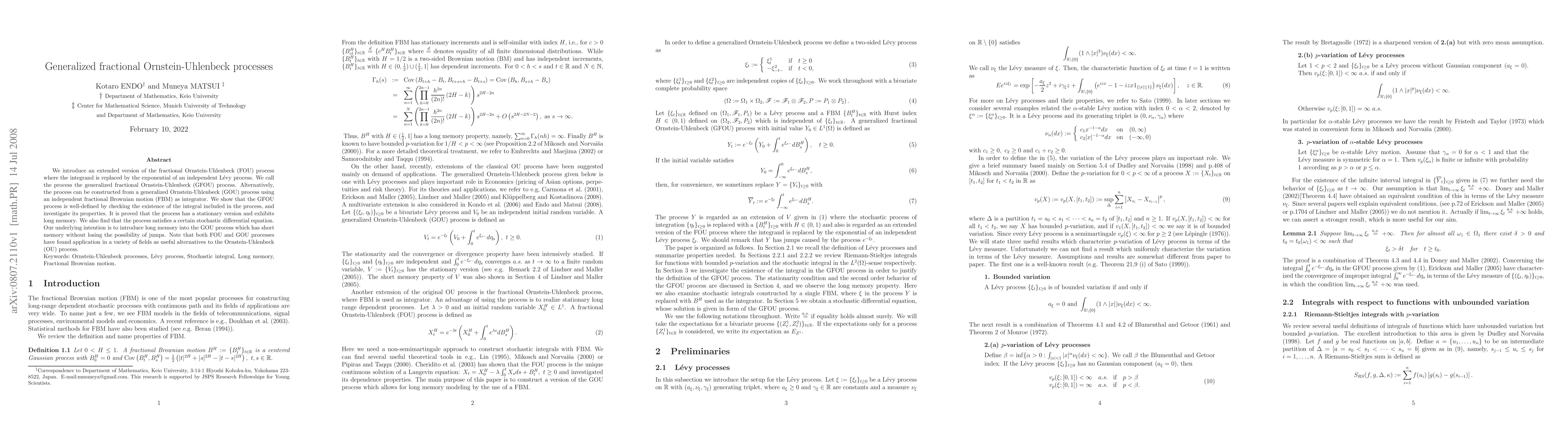 This paper introduces the generalized fractional Ornstein-Uhlenbeck (GFOU) process, an extension of the fractional Ornstein-Uhlenbeck process using an independent Lévy process, which maintains long memory while allowing for jumps. The process is shown to be well-defined and satisfies a stochastic differential equation, with applications in various fields.