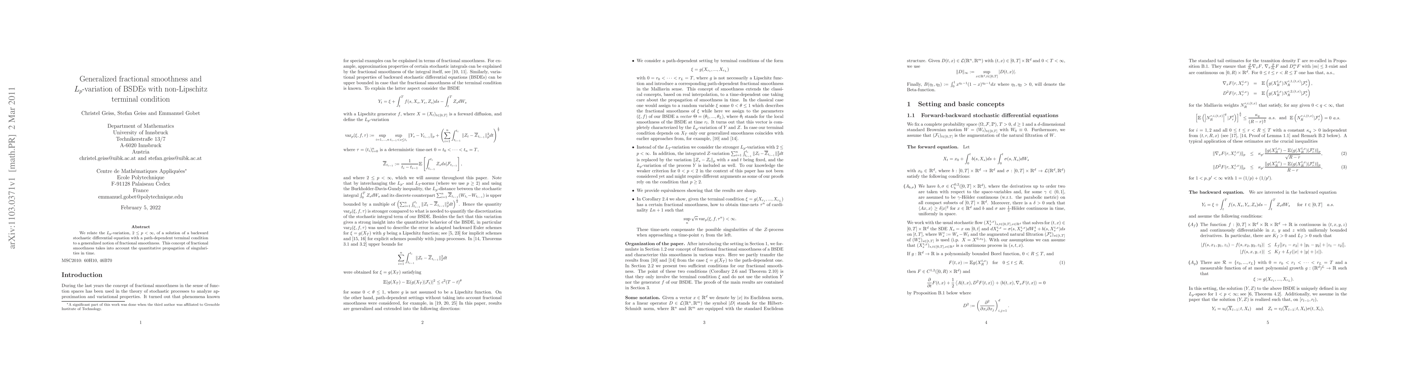 We relate the $L_p$-variation, $2\le p < \infty$, of a solution of a backward stochastic differential equation with a path-dependent terminal condition to a generalized notion of fractional smoothness. This concept of fractional smoothness takes into account the quantitative propagation of singularities in time.