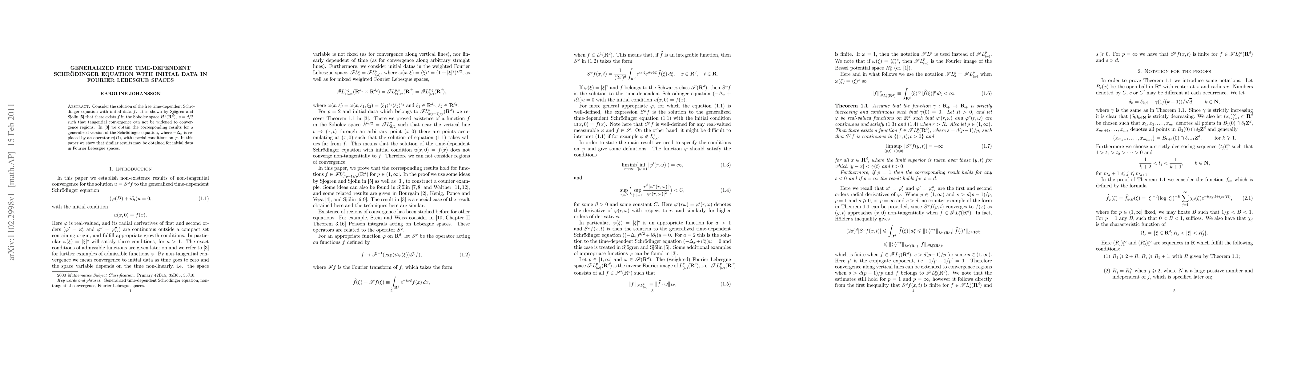 Consider the solution of the free time-dependent Schr\"odinger equation with initial data f. It is shown by Sj\"ogren and Sj\"olin (1989) that there exists f in the Sobolev space H^s(R^d), s=d/2 such that tangential convergence can not be widened to convergence regions. In 2010 we obtained the corresponding results for a generalized version of the Schr\"odinger equation, where -\Delta_x is replaced by an operator \phi(D), with special conditions on \phi. In this paper we show that similar results may be obtained for initial data in Fourier Lebesgue spaces.