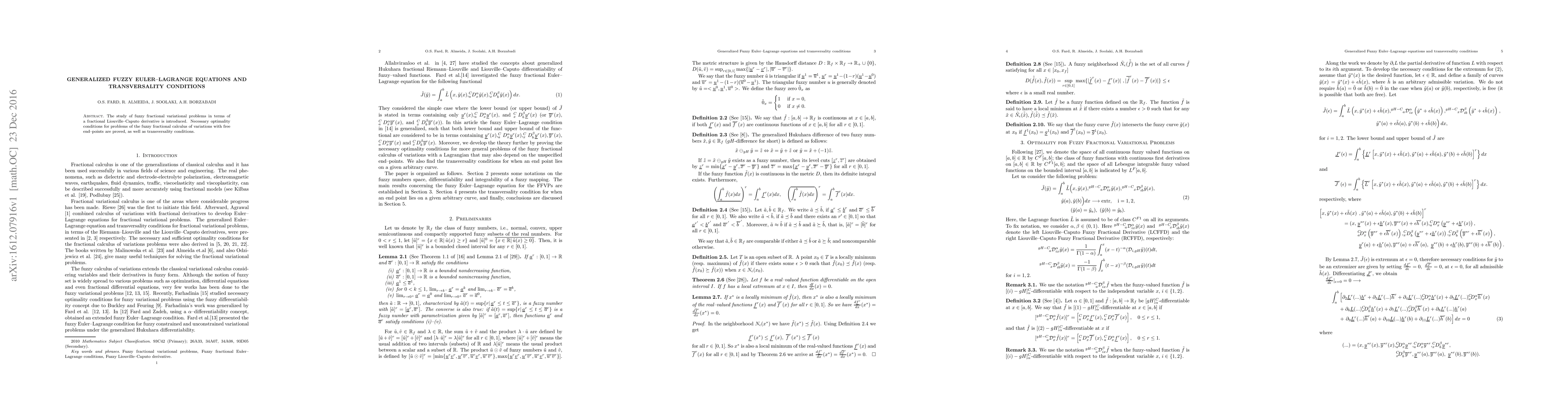 This paper introduces generalized fuzzy Euler-Lagrange equations for fuzzy fractional variational problems using the fractional Liouville-Caputo derivative. It proves necessary optimality conditions and transversality conditions for these problems with free end-points.
