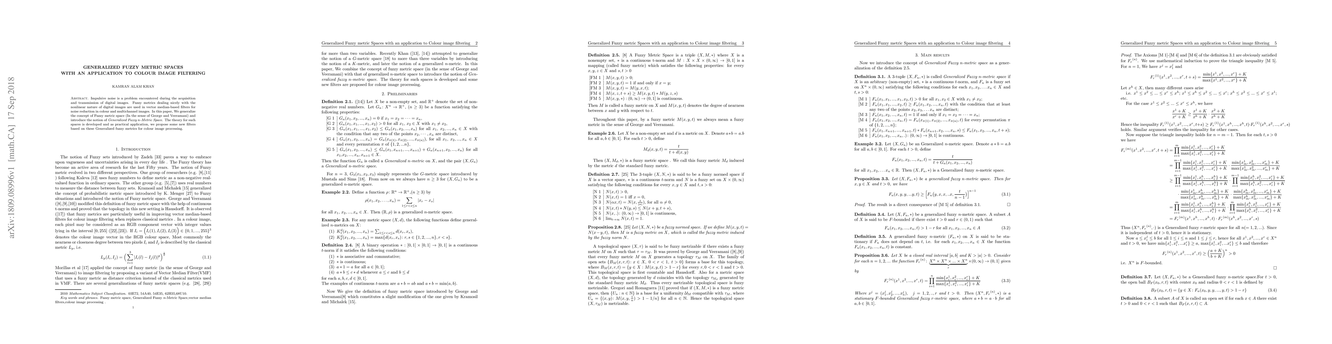 This paper generalizes the concept of Fuzzy metric spaces to Generalized Fuzzy n-Metric Spaces, developing the theoretical framework. It proposes new filters based on these metrics for color image filtering to address impulsive noise, leveraging the nonlinear nature of digital images.