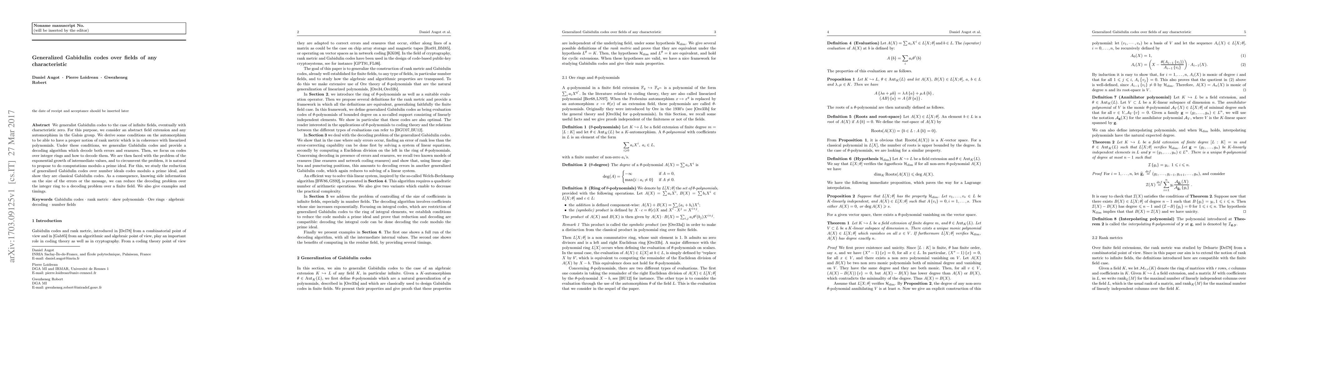We generalise Gabidulin codes to the case of infinite fields, eventually with characteristic zero. For this purpose, we consider an abstract field extension and any automorphism in the Galois group. We derive some conditions on the automorphism to be able to have a proper notion of rank metric which is in coherence with linearized polynomials. Under these conditions, we generalize Gabidulin codes and provide a decoding algorithm which decode both errors and erasures. Then, we focus on codes over integer rings and how to decode them. We are then faced with the problem of the exponential growth of intermediate values, and to circumvent the problem, it is natural to propose to do computations modulo a prime ideal. For this, we study the reduction of generalized Gabidulin codes over number ideals codes modulo a prime ideal, and show they are classical Gabidulin codes. As a consequence, knowing side information on the size of the errors or the message, we can reduce the decoding problem over the integer ring to a decoding problem over a finite field. We also give examples and timings.