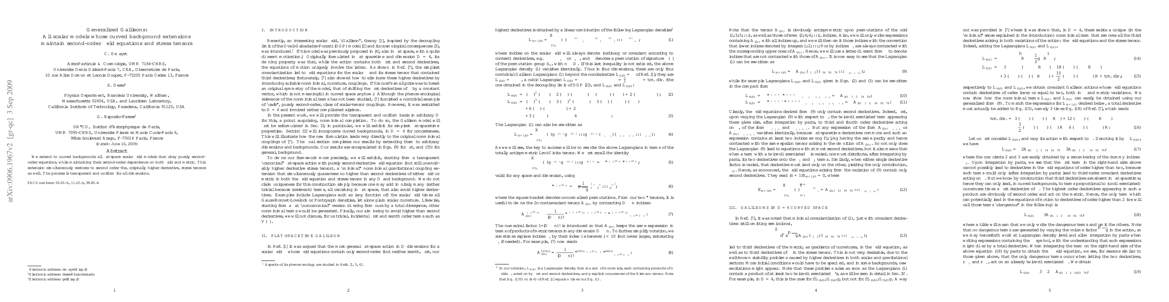 We extend to curved backgrounds all flat-space scalar field models that obey purely second-order equations, while maintaining their second-order dependence on both field and metric. This extension simultaneously restores to second order the, originally higher derivative, stress tensors as well. The process is transparent and uniform for all dimensions.