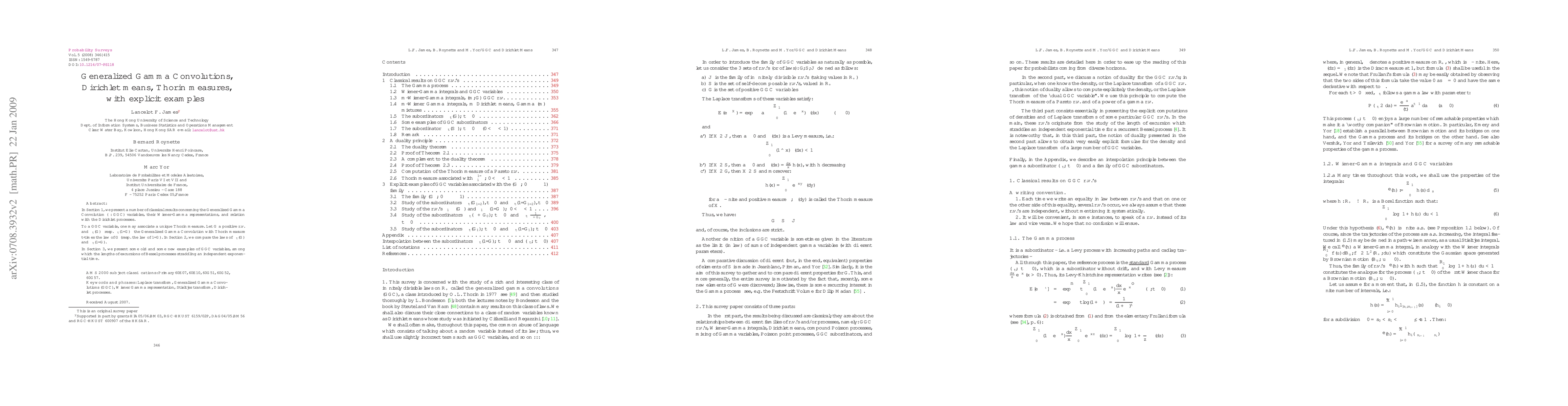 In Section 1, we present a number of classical results concerning the Generalized Gamma Convolution (:GGC) variables, their Wiener-Gamma representations, and relation with the Dirichlet processes.To a GGC variable, one may associate a unique Thorin measure. Let $G$ a positive r.v. and $\Gamma_t(G)$ (resp. $\Gamma_t(1/G))$ the Generalized Gamma Convolution with Thorin measure $t$-times the law of $G$ (resp. the law of $1/G$). In Section 2, we compare the laws of $\Gamma_t(G)$ and $\Gamma_t(1/G)$.In Section 3, we present some old and some new examples of GGC variables, among which the lengths of excursions of Bessel processes straddling an independent exponential time.