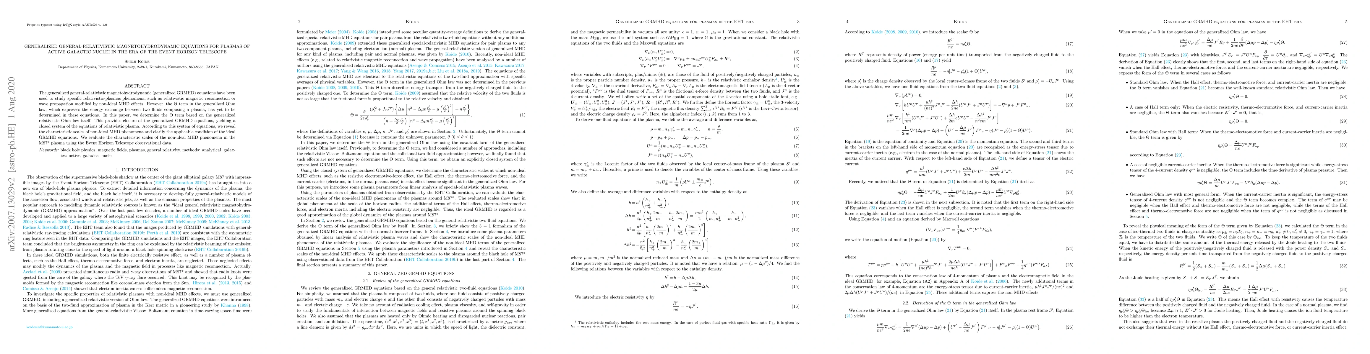 The generalized general-relativisticmagnetohydrodynamic (generalized GRMHD) equations have been used to study specific relativistic-plasmas phenomena, such as relativistic magnetic reconnection or wave propagation modified by non-ideal MHD effects. However, the "Theta" term in the generalized Ohm law, which expresses the energy exchange between two fluids composing a plasma, has yet to be determined in these equations. In this paper, we determine the "Theta" term based on the generalized relativistic Ohm law itself. This provides closure of the generalized GRMHD equations, yielding a closed system of the equations of relativistic plasma. According to this system of equations, we reveal the characteristic scales of non-ideal MHD phenomena and clarify the applicable condition of the ideal GRMHD equations. We evaluate the characteristic scales of the non-ideal MHD phenomena in the M87* plasma using the Event Horizon Telescope observational data.