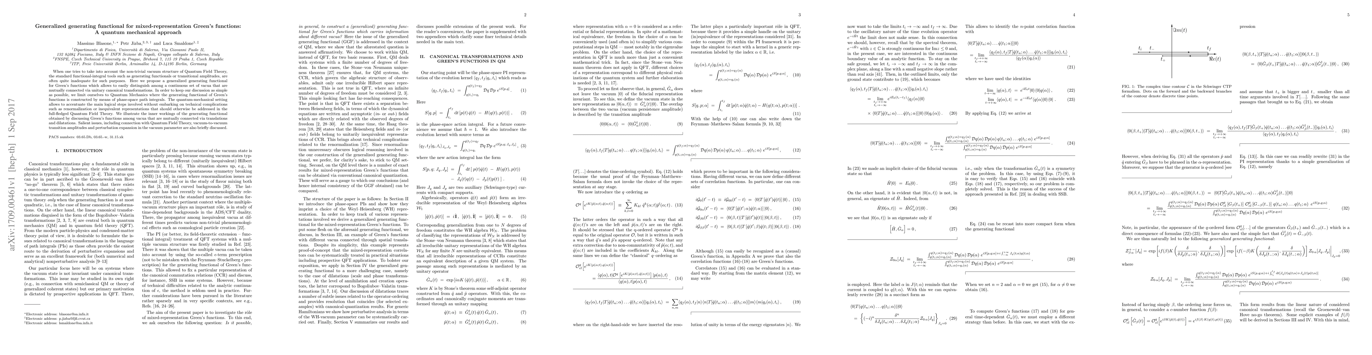 When one tries to take into account the non-trivial vacuum structure of Quantum Field Theory, the standard functional-integral tools such as generating functionals or transitional amplitudes, are often quite inadequate for such purposes. Here we propose a generalized generating functional for Green's functions which allows to easily distinguish among a continuous set of vacua that are mutually connected via unitary canonical transformations. In order to keep our discussion as simple as possible, we limit ourselves to Quantum Mechanics where the generating functional of Green's functions is constructed by means of phase-space path integrals. The quantum-mechanical setting allows to accentuate the main logical steps involved without embarking on technical complications such as renormalization or inequivalent representations that should otherwise be addressed in the full-fledged Quantum Field Theory. We illustrate the inner workings of the generating functional obtained by discussing Green's functions among vacua that are mutually connected via translations and dilatations. Salient issues, including connection with Quantum Field Theory, vacuum-to-vacuum transition amplitudes and perturbation expansion in the vacuum parameter are also briefly discussed.