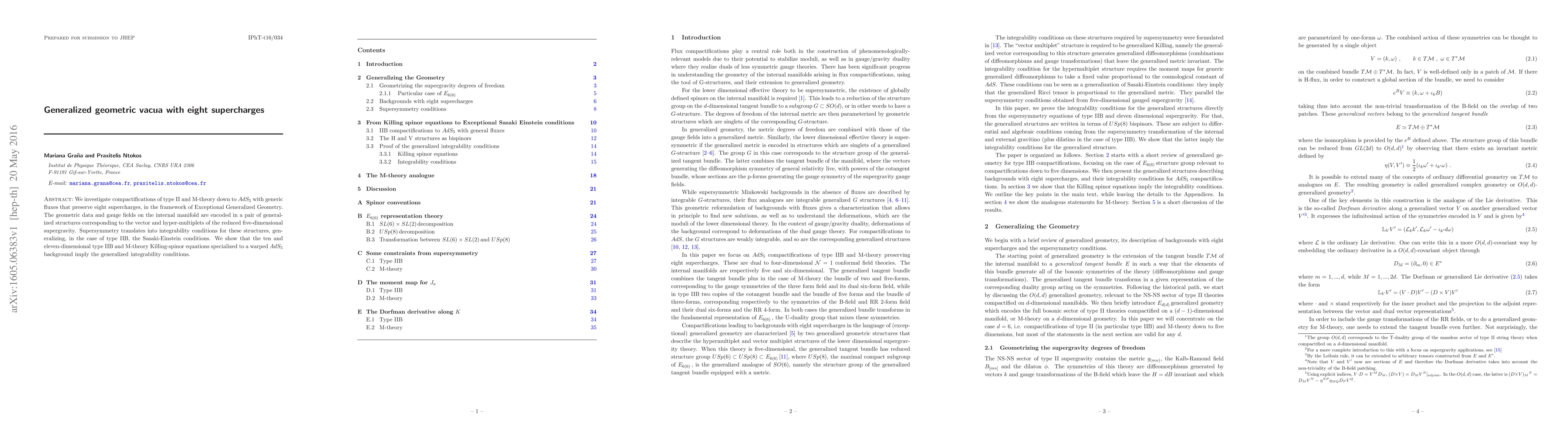 This paper explores compactifications of type II and M-theory to $AdS_5$ with eight preserved supercharges, using Exceptional Generalized Geometry. It demonstrates that the Killing-spinor equations in these theories lead to generalized integrability conditions for the geometric structures.
