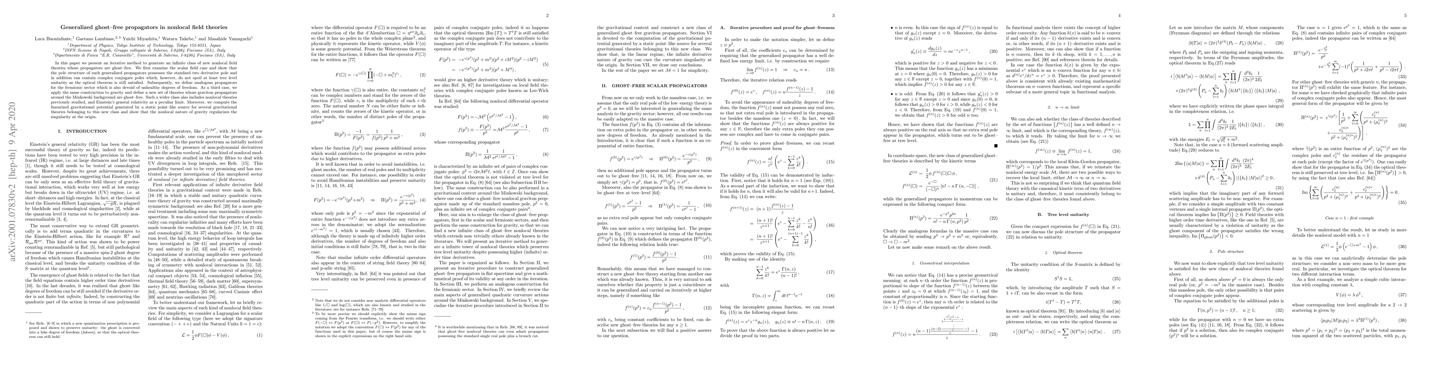 In this paper we present an iterative method to generate an infinite class of new nonlocal field theories whose propagators are ghost-free. We first examine the scalar field case and show that the pole structure of such generalized propagators possesses the standard two derivative pole and in addition can contain complex conjugate poles which, however, do not spoil at least tree level unitarity as the optical theorem is still satisfied. Subsequently, we define analogous propagators for the fermionic sector which is also devoid of unhealthy degrees of freedom. As a third case, we apply the same construction to gravity and define a new set of theories whose graviton propagators around the Minkowski background are ghost-free. Such a wider class also includes nonlocal theories previously studied, and Einstein's general relativity as a peculiar limit. Moreover, we compute the linearized gravitational potential generated by a static point-like source for several gravitational theories belonging to this new class and show that the nonlocal nature of gravity regularizes the singularity at the origin.