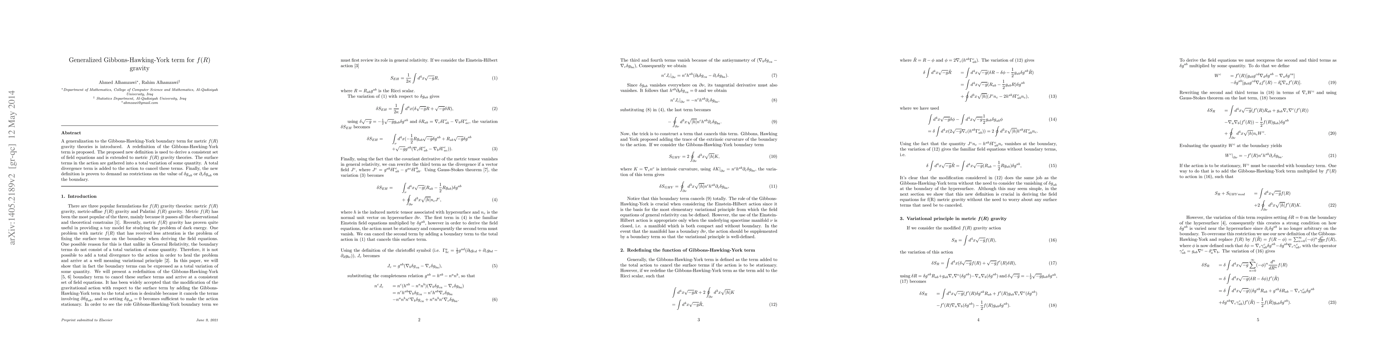 A generalization to the Gibbons-Hawking-York boundary term for metric $f(R)$ gravity theories is introduced. A redefinition of the Gibbons-Hawking-York term is proposed. The proposed new definition is used to derive a consistent set of field equations and is extended to metric $f(R)$ gravity theories. The surface terms in the action are gathered into a total variation of some quantity. A total divergence term is added to the action to cancel these terms. Finally, the new definition is proven to demand no restrictions on the value of ${\delta g}_{ab}$ or ${\partial}_{c}{\delta g}_{ab}$ on the boundary.