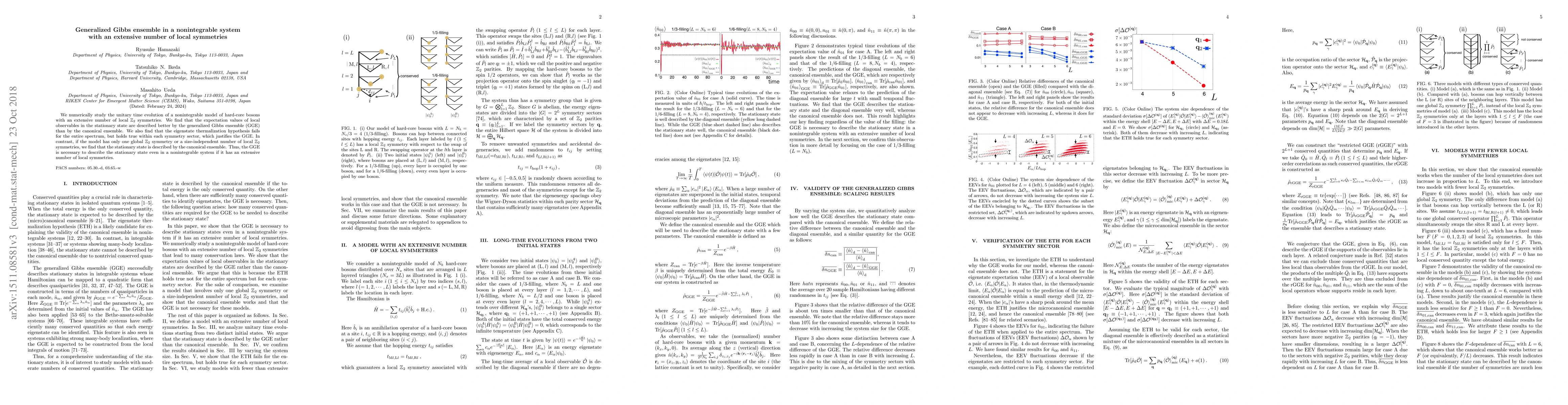 We numerically study the unitary time evolution of a nonintegrable model of hard-core bosons with an extensive number of local Z2 symmetries. We find that the expectation values of local observables in the stationary state are described better by the generalized Gibbs ensemble (GGE) than by the canonical ensemble. We also find that the eigenstate thermalization hypothesis fails for the entire spectrum, but holds true within each symmetry sector, which justifies the GGE. In contrast, if the model has only one global Z2 symmetry or a size-independent number of local Z2 symmetries, we find that the stationary state is described by the canonical ensemble. Thus, the GGE is necessary to describe the stationary state even in a nonintegrable system if it has an extensive number of local symmetries.
