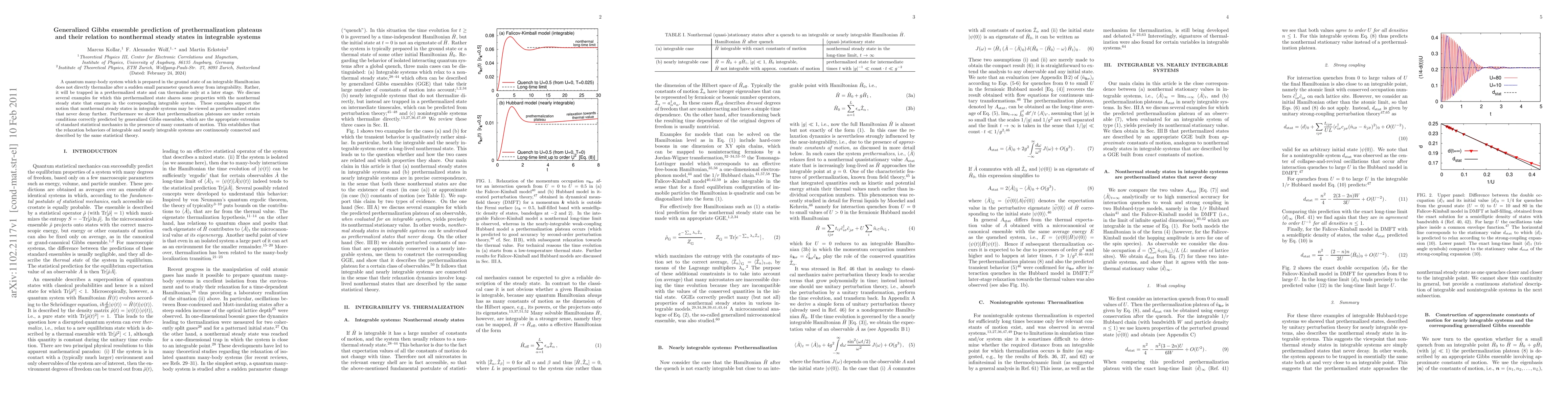 This paper explores the concept of prethermalization in integrable quantum systems following a small quench, revealing that these systems do not immediately thermalize but enter a prethermalized state. It demonstrates that generalized Gibbs ensembles can predict prethermalization plateaus, linking the prethermalized state to nonthermal steady states in integrable systems.