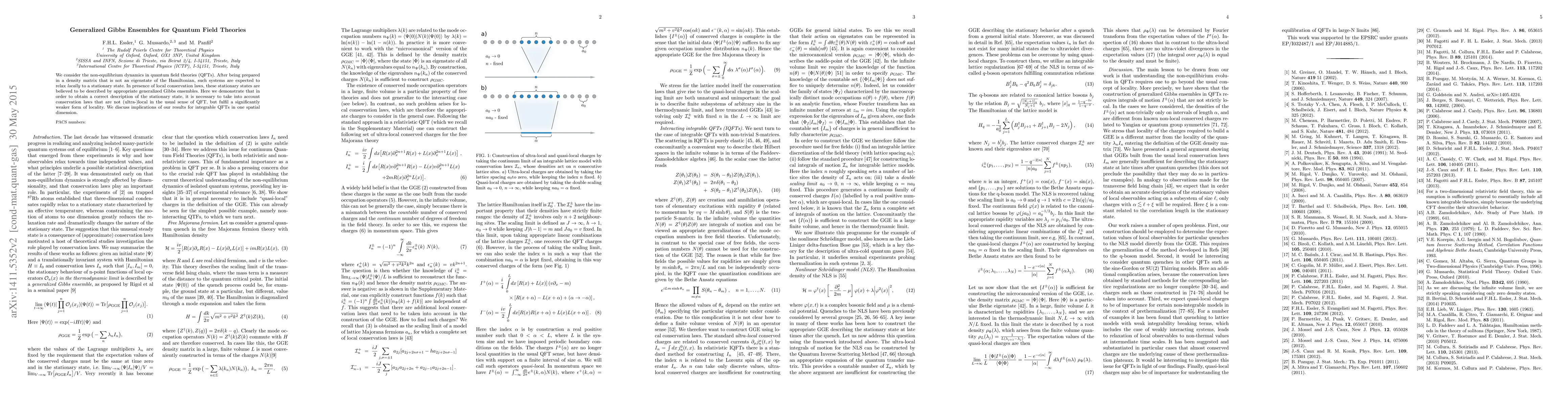 This paper explores the non-equilibrium dynamics in quantum field theories following a non-Hamiltonian density matrix preparation, showing that generalized Gibbs ensembles are necessary for describing the resulting stationary states. The study highlights the importance of considering non-(ultra-)local conservation laws in achieving an accurate description of these states, with implications for integrable QFTs in one dimension.
