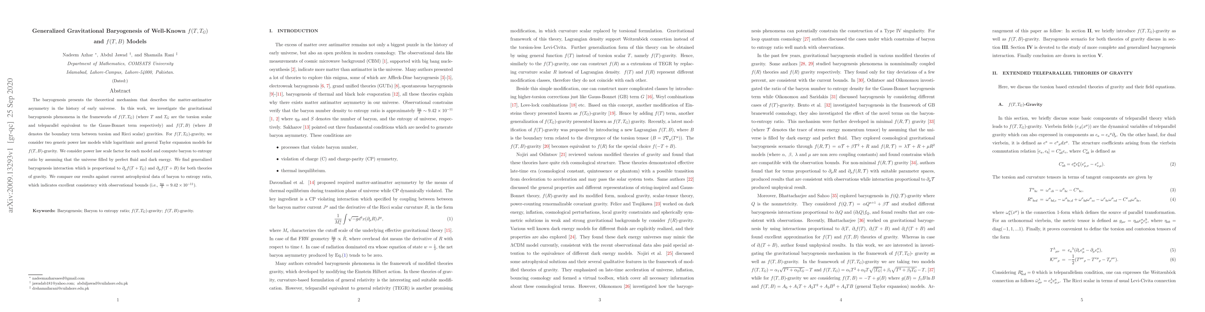 The baryogenesis presents the theoretical mechanism that describes the matter-antimatter asymmetry in the history of early universe. In this work, we investigate the gravitational baryogenesis phenomena in the frameworks of $f(T, T_G)$ (where $T$ and $T_G$ are the torsion scalar and teleparallel equivalent to the Gauss-Bonnet term respectively) and $f(T, B)$ (where $B$ denotes the boundary term between torsion and Ricci scalar) gravities. For $f(T,T_G)$-gravity, we consider two generic power law models while logarithmic and general Taylor expansion models for $f(T,B)$-gravity. We consider power law scale factor for each model and compute baryon to entropy ratio by assuming that the universe filled by perfect fluid and dark energy. We find generalized baryogenesis interaction which is proportional to $\partial_\mu f(T+T_G)$ and $\partial_\mu f(T+B)$ for both theories of gravity. We compare our results against current astrophysical data of baryon to entropy ratio, which indicates excellent consistency with observational bounds (i.e., $\frac{\eta_B}{S} = 9.42 \times 10^{-11}$).