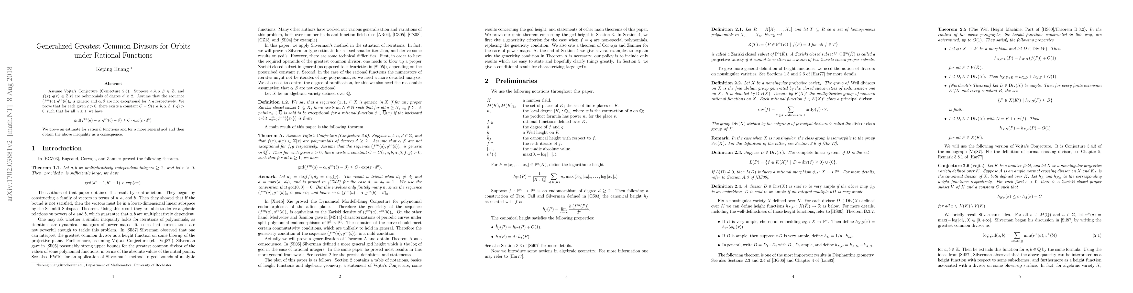 Assume Vojta's Conjecture. Suppose $a, b, \alpha,\beta \in \mathbb{Z}$, and $f(x),g(x) \in \mathbb{Z}[x]$ are polynomials of degree $d \ge 2$. Assume that the sequence $(f^{\circ n}(a), g^{\circ n}(b))_n$ is generic and $\alpha,\beta$ are not exceptional for $f,g$ respectively, we prove that for each given $\varepsilon > 0$, there exists constant $C = C(\varepsilon,a,b,\alpha,\beta,f,g)>0$, such that for all $n \ge 1$, we have $$\gcd(f^{\circ n}(a)-\alpha, g^{\circ n}(b) -\beta) \le C\cdot\exp({\varepsilon\cdot d^n}). $$ We prove an estimate for rational functions and for a more general gcd and then obtain the above inequality as a consequence.