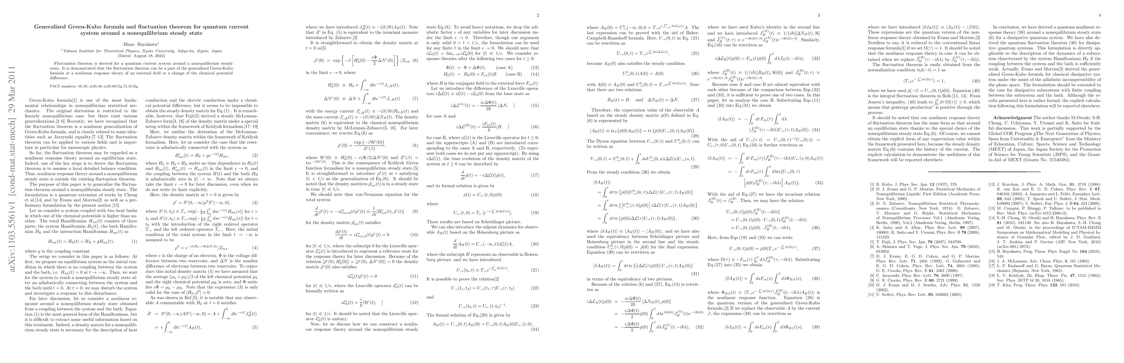 Summary: This paper derives a fluctuation theorem for quantum current systems near nonequilibrium steady states, showing that it can be integrated into the generalized Green-Kubo formula and nonlinear response theories concerning external fields or chemical potential changes.
