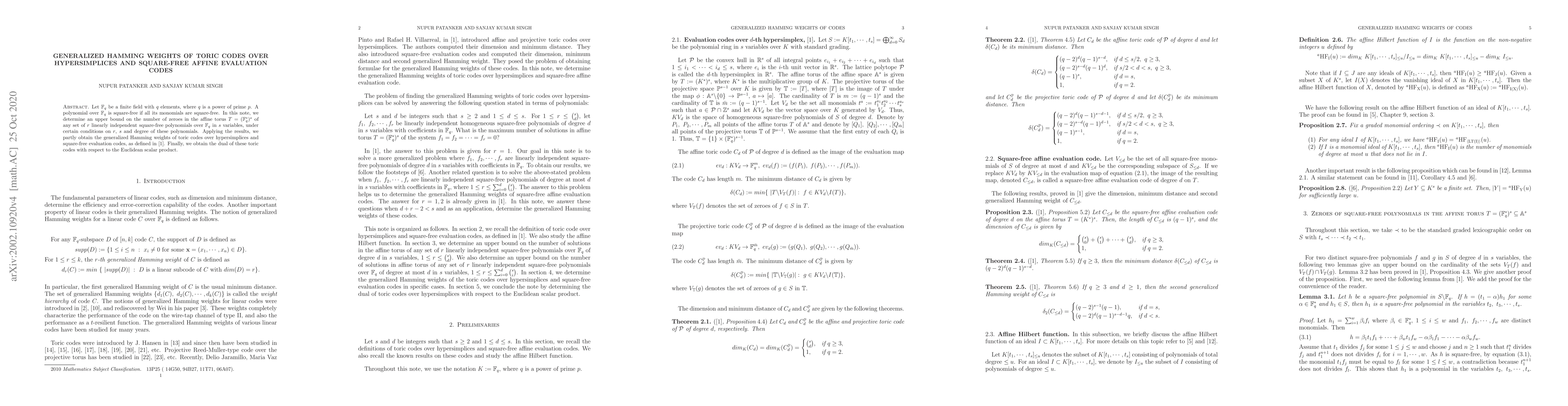 Researchers determined an upper bound on zeroes in affine torus of square-free polynomials to generalize Hamming weights of toric codes over hypersimplices and evaluation codes.