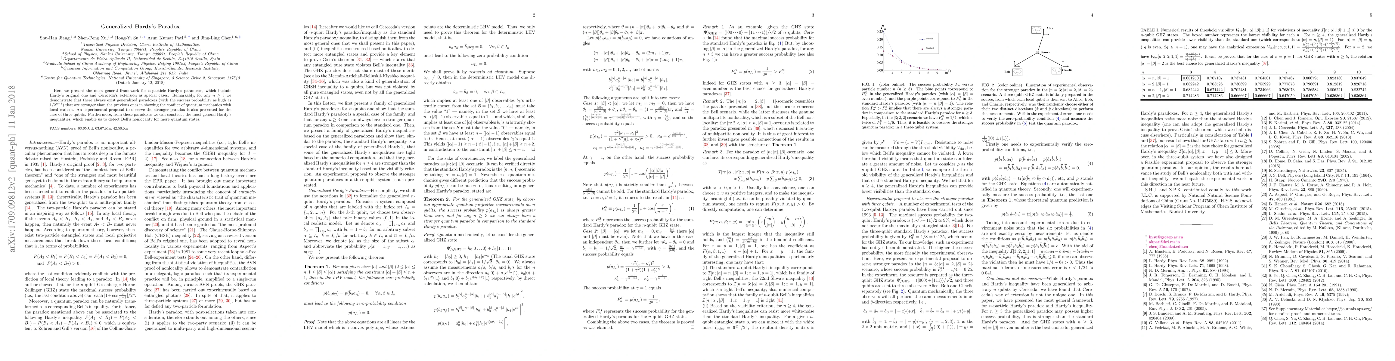 This paper generalizes Hardy's paradox to $n$-particles, showing stronger conflicts with local realism for $n \ge 3$, with success probabilities up to $1/2^{n-1}$. An experimental setup for observing the paradox with three qubits is proposed, and generalized Hardy's inequalities are introduced to detect Bell's nonlocality in more quantum states.