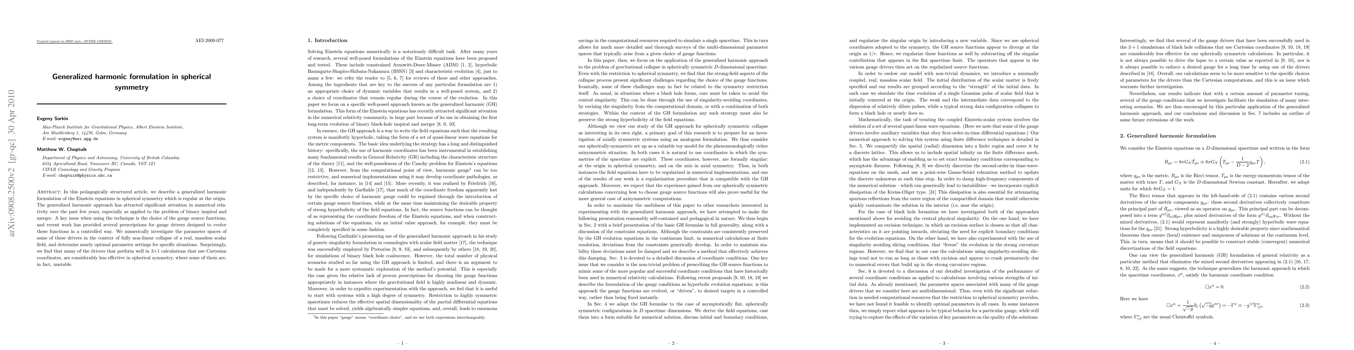 This paper presents a generalized harmonic formulation for spherically symmetric Einstein equations, focusing on its regularity at the origin. It investigates the effectiveness of various gauge drivers in non-linear scalar field collapse, finding that many drivers effective in Cartesian coordinates perform poorly or become unstable in spherical symmetry.