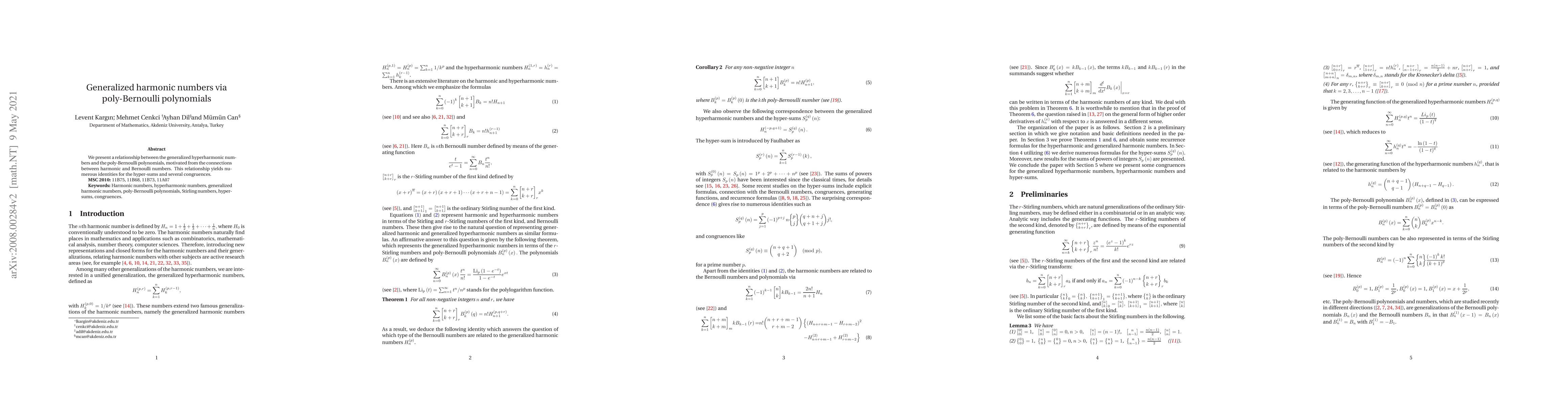 This paper establishes a link between generalized hyperharmonic numbers and poly-Bernoulli polynomials, revealing new identities and congruences inspired by the relationship between harmonic and Bernoulli numbers.