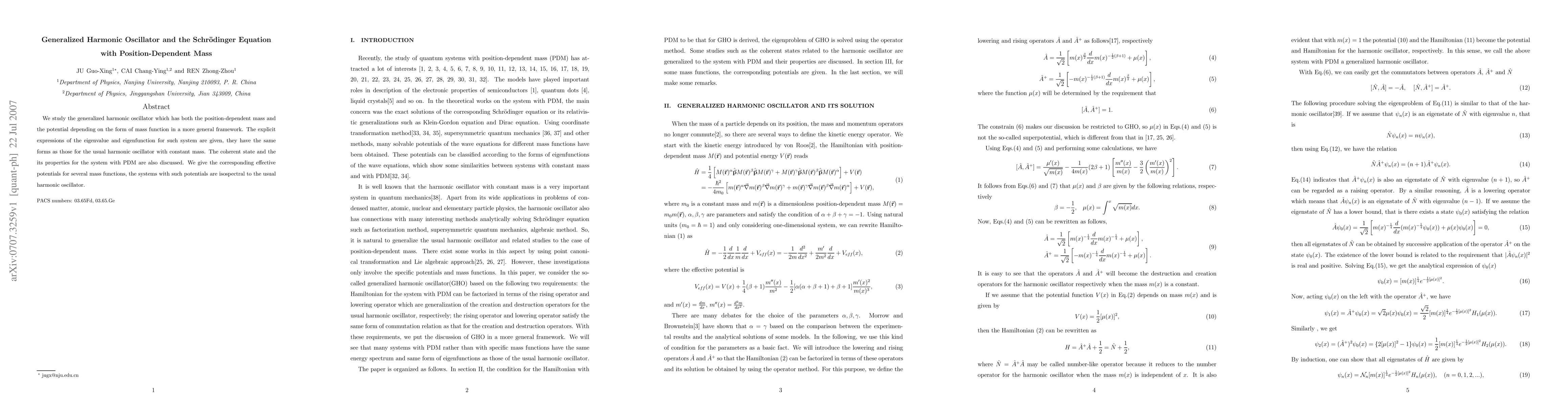 This paper investigates the generalized harmonic oscillator with a position-dependent mass, deriving explicit expressions for its eigenvalues and eigenfunctions akin to the standard harmonic oscillator. It also explores coherent states and effective potentials for various mass functions, demonstrating isospectrality with the usual harmonic oscillator.