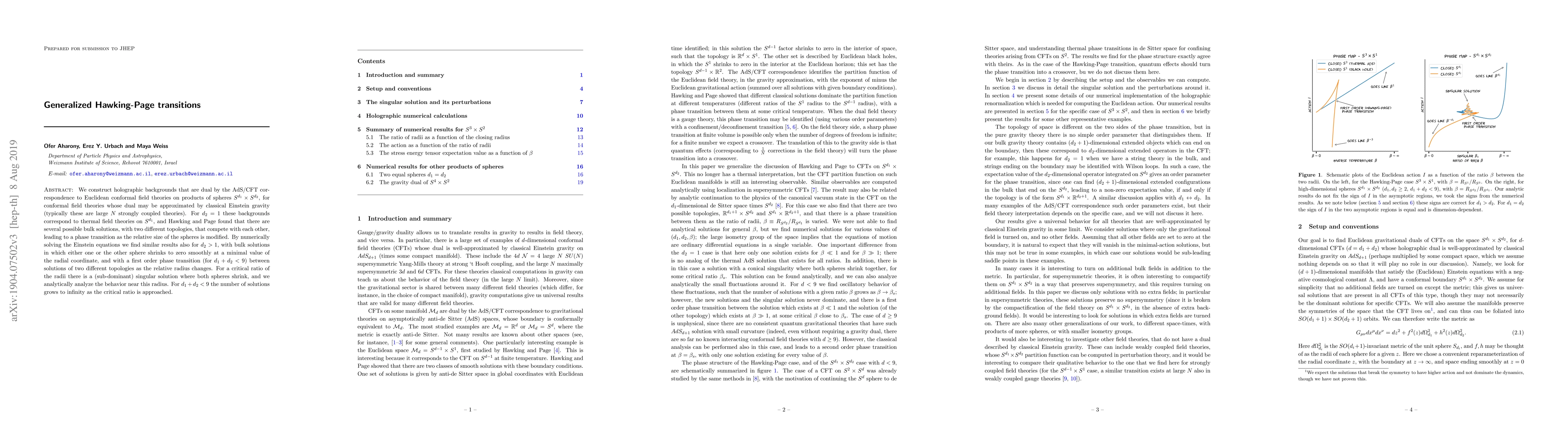 This paper constructs holographic backgrounds dual to conformal field theories on $S^{d_1}\times S^{d_2}$ and finds first-order phase transitions between different topologies as the relative size of the spheres changes. It extends the generalized Hawking-Page transition to higher dimensions, revealing a critical ratio where both spheres shrink.