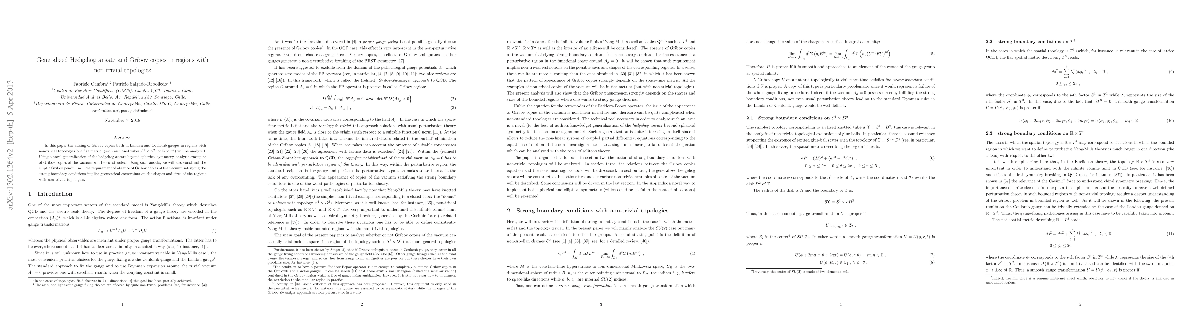 In this paper the arising of Gribov copies both in Landau and Coulomb gauges in regions with non-trivial topologies but flat metric, (such as closed tubes S1XD2, or RXT2) will be analyzed. Using a novel generalization of the hedgehog ansatz beyond spherical symmetry, analytic examples of Gribov copies of the vacuum will be constructed. Using such ansatz, we will also construct the elliptic Gribov pendulum. The requirement of absence of Gribov copies of the vacuum satisfying the strong boundary conditions implies geometrical constraints on the shapes and sizes of the regions with non-trivial topologies.