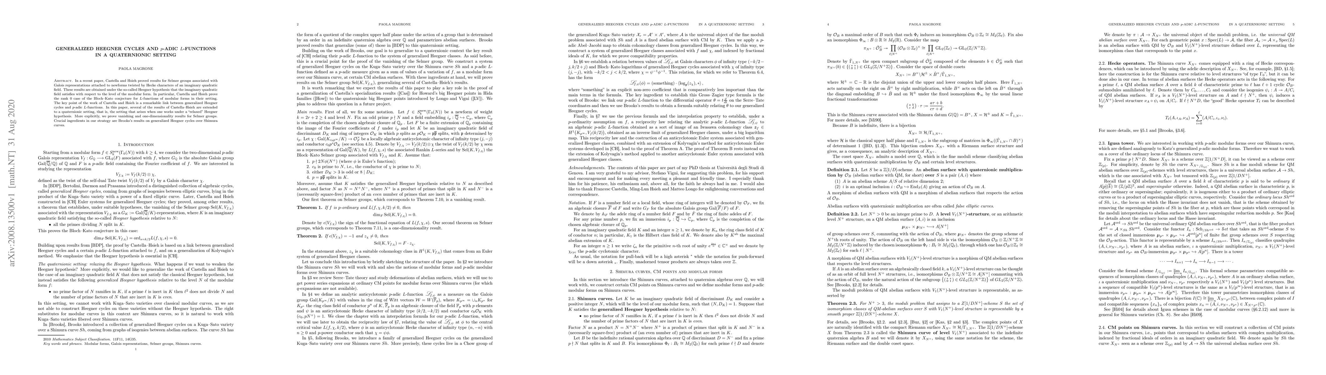 This paper extends Castella and Hsieh's results on Selmer groups and $p$-adic $L$-functions from a classical Heegner hypothesis to a "relaxed" quaternionic setting, proving vanishing and one-dimensionality results using Brooks's work on generalized Heegner cycles.