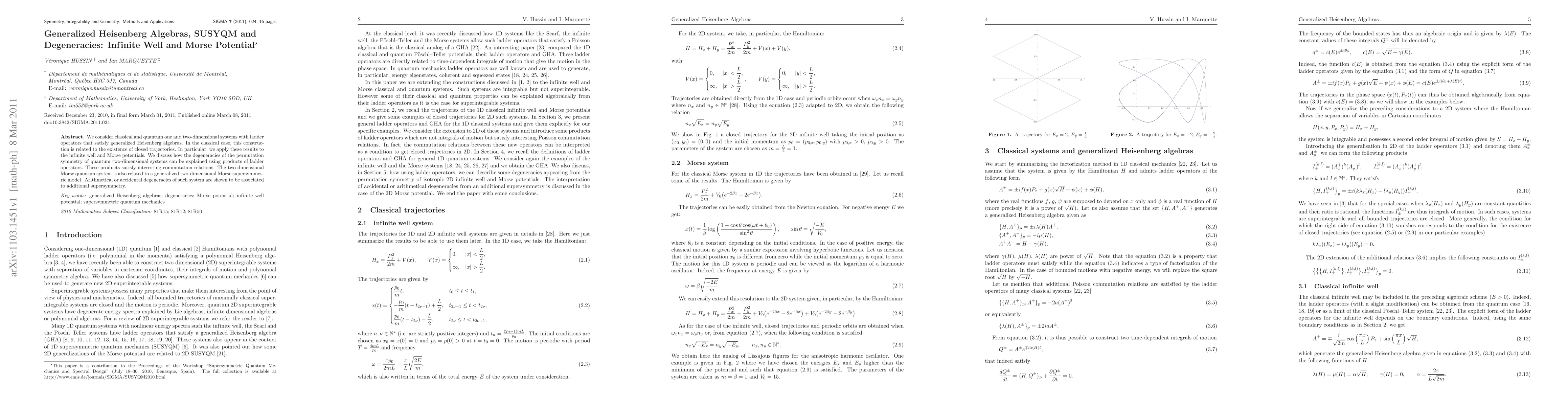 We consider classical and quantum one and two-dimensional systems with ladder operators that satisfy generalized Heisenberg algebras. In the classical case, this construction is related to the existence of closed trajectories. In particular, we apply these results to the infinite well and Morse potentials. We discuss how the degeneracies of the permutation symmetry of quantum two-dimensional systems can be explained using products of ladder operators. These products satisfy interesting commutation relations. The two-dimensional Morse quantum system is also related to a generalized two-dimensional Morse supersymmetric model. Arithmetical or accidental degeneracies of such system are shown to be associated to additional supersymmetry.