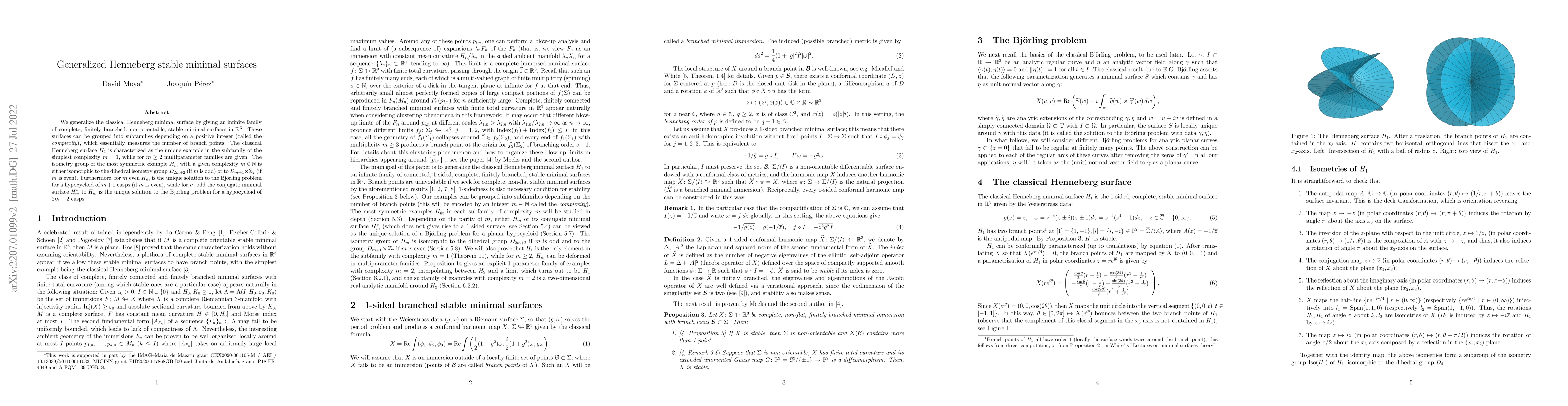 This paper generalizes the classical Henneberg minimal surface to an infinite family of complete, stable minimal surfaces in $\mathbb{R}^3$, characterized by a complexity parameter. The surfaces are non-orientable and have varying isometry groups depending on the complexity, with unique solutions to Björling problems for specific hypocycloids.