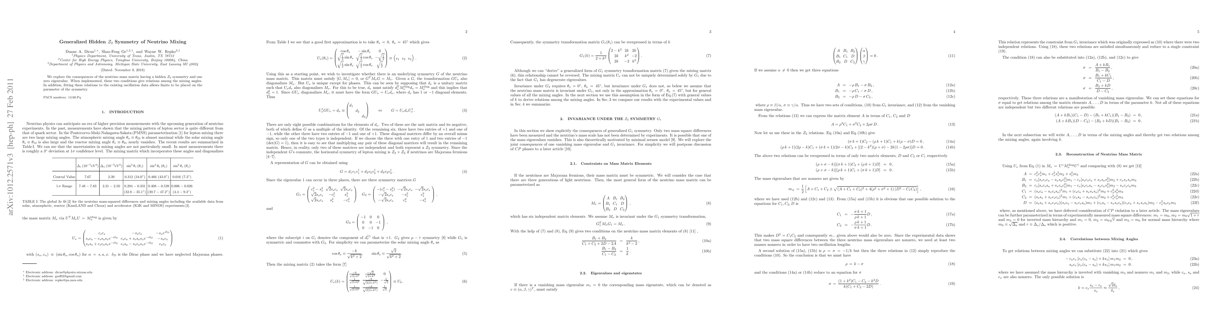 This research paper explores the consequences of a hidden $/mathcal{Z}_2$ symmetry in neutrino mass matrices, revealing relations among mixing angles that can be tested against existing oscillation data.