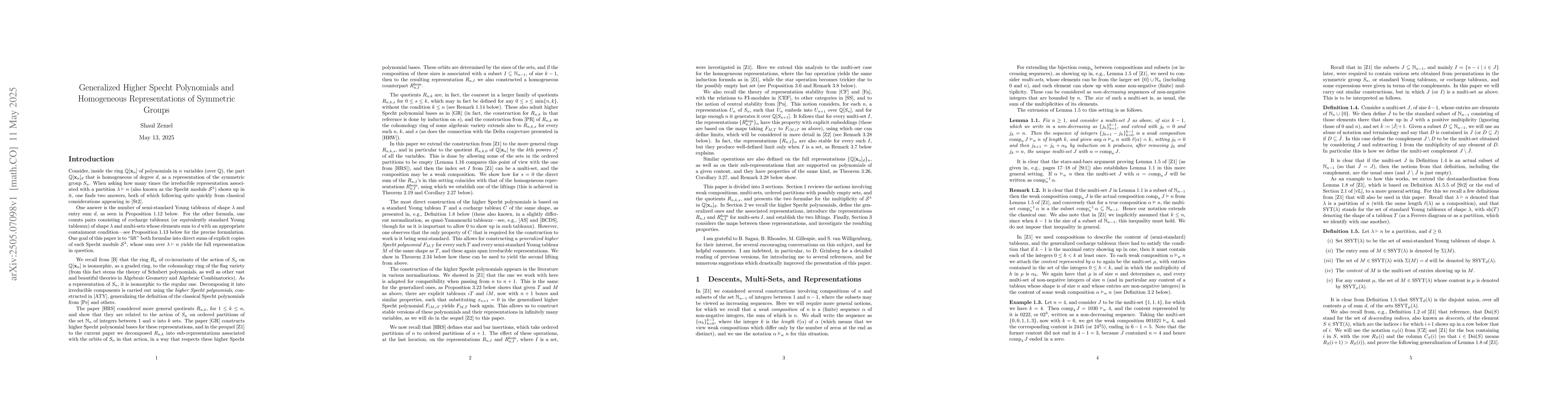 The paper introduces generalized higher Specht polynomials and uses them to obtain new decomposition formulas for homogeneous representations of symmetric groups, lifting existing formulas involving Kostka numbers.