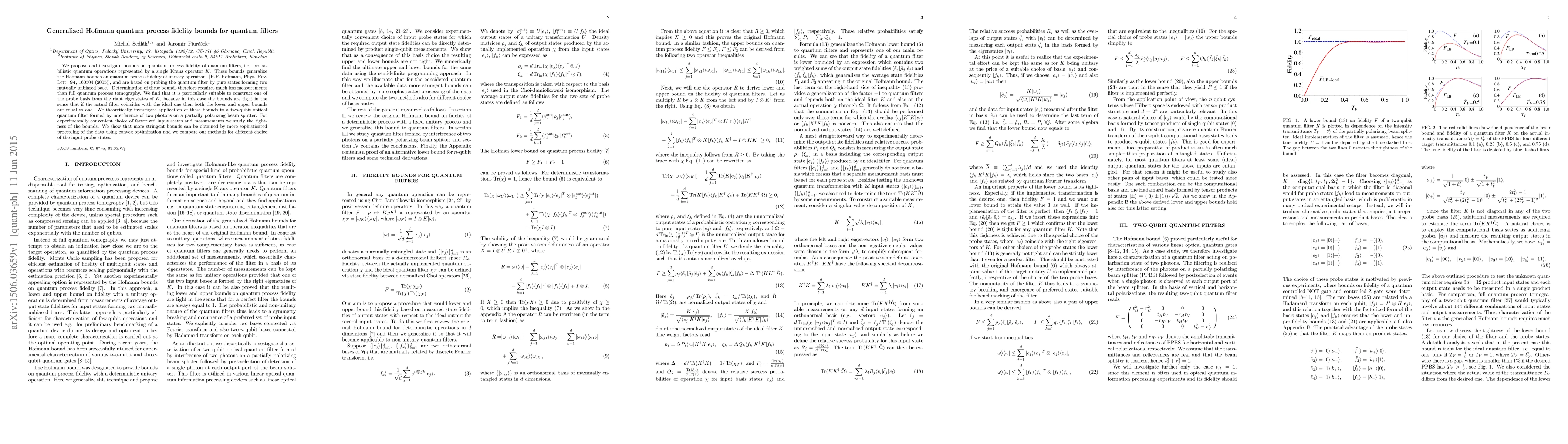 This paper proposes generalized bounds on the fidelity of quantum filters, extending Hofmann's bounds for unitary operations, and demonstrates their application to a two-qubit optical quantum filter. The bounds require fewer measurements than full quantum process tomography and are shown to be tight when using probe states based on the filter's right eigenstates.
