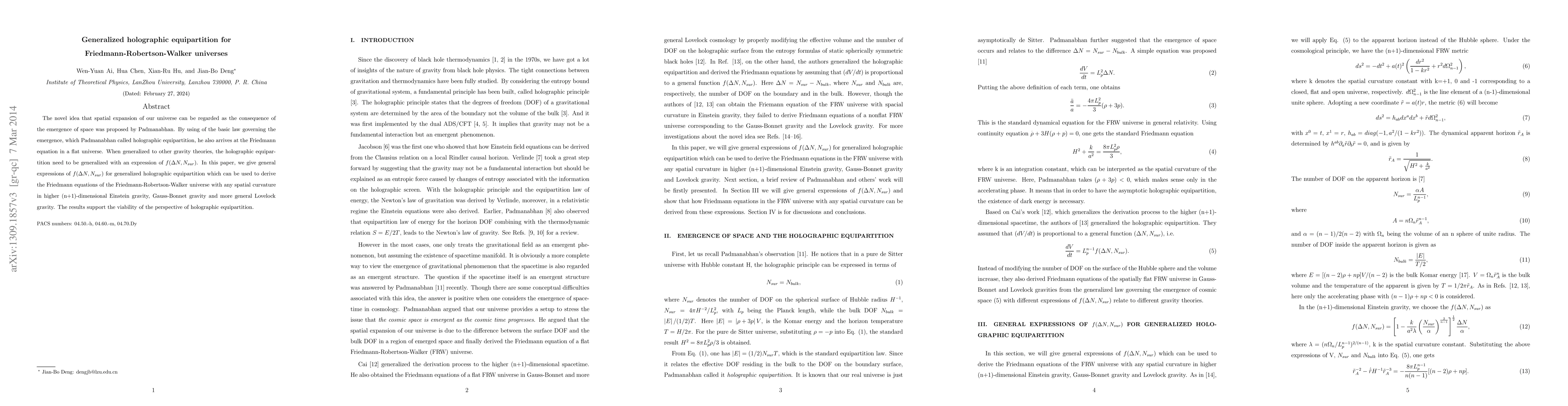 This paper generalizes Padmanabhan's holographic equipartition principle to derive Friedmann equations for Friedmann-Robertson-Walker universes in various gravity theories, including Einstein, Gauss-Bonnet, and Lovelock gravities, supporting the idea that spatial expansion can emerge from holographic equipartition principles.