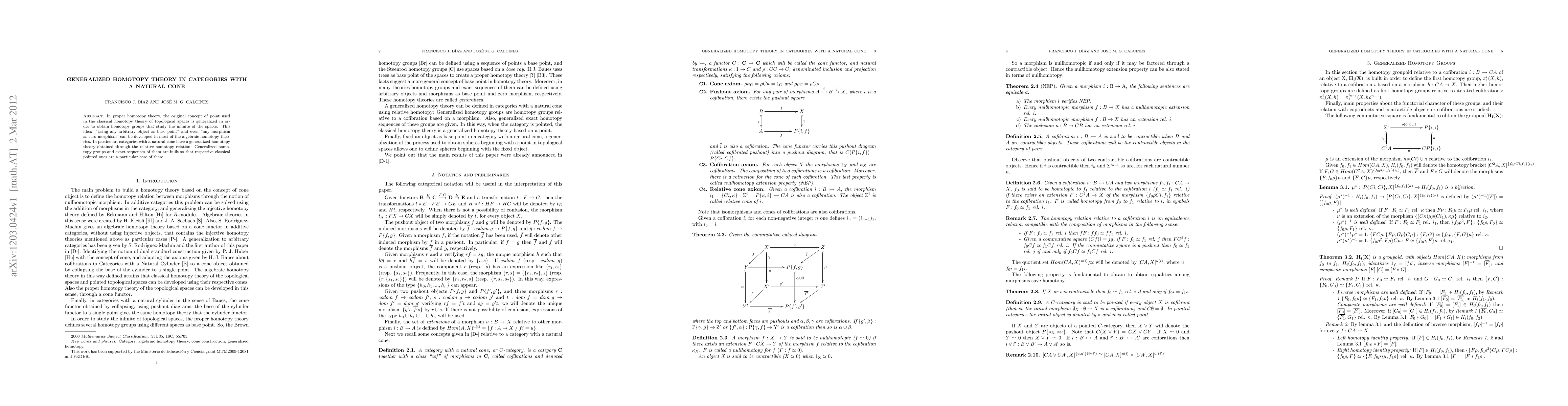 In proper homotopy theory, the original concept of point used in the classical homotopy theory of topological spaces is generalized in order to obtain homotopy groups that study the infinite of the spaces. This idea: "Using any arbitrary object as base point" and even "any morphism as zero morphism" can be developed in most of the algebraic homotopy theories. In particular, categories with a natural cone have a generalized homotopy theory obtained through the relative homotopy relation. Generalized homotopy groups and exact sequences of them are built so that respective classical pointed ones are a particular case of these.